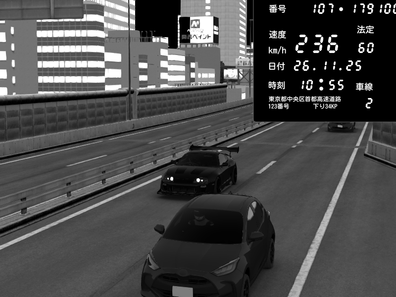 | 2025/11/26 10:55 | C1外回り 芝公園 | 236 / 60 km/h | yuh | Toyota Supra MKIV Time Attack | CAPTURE |