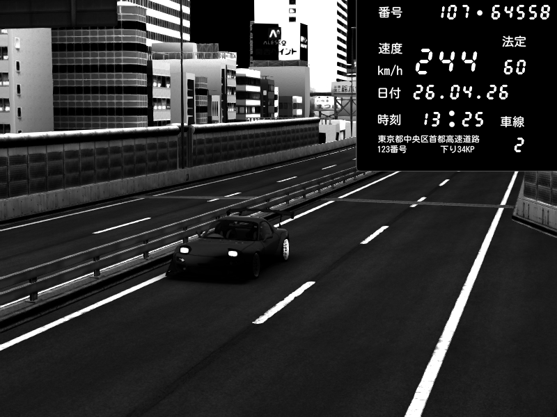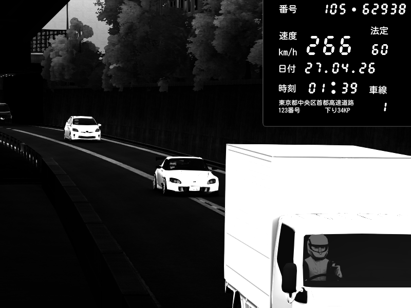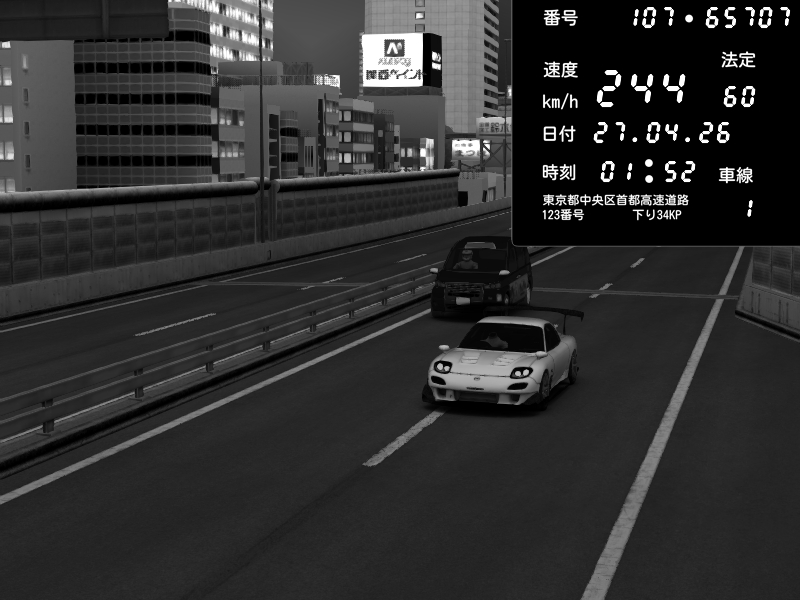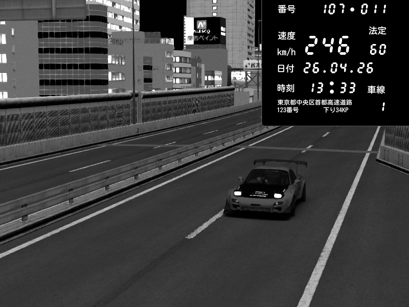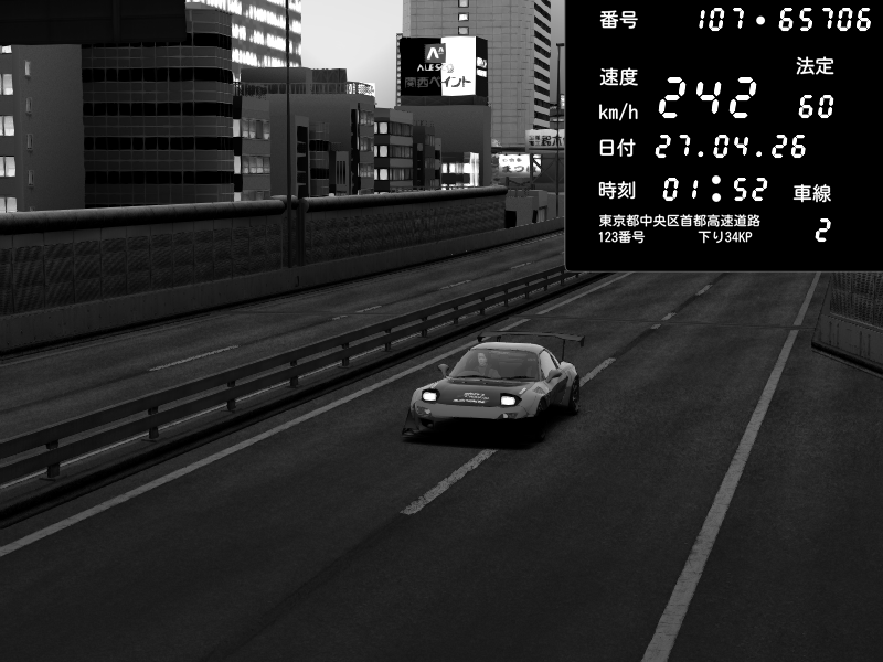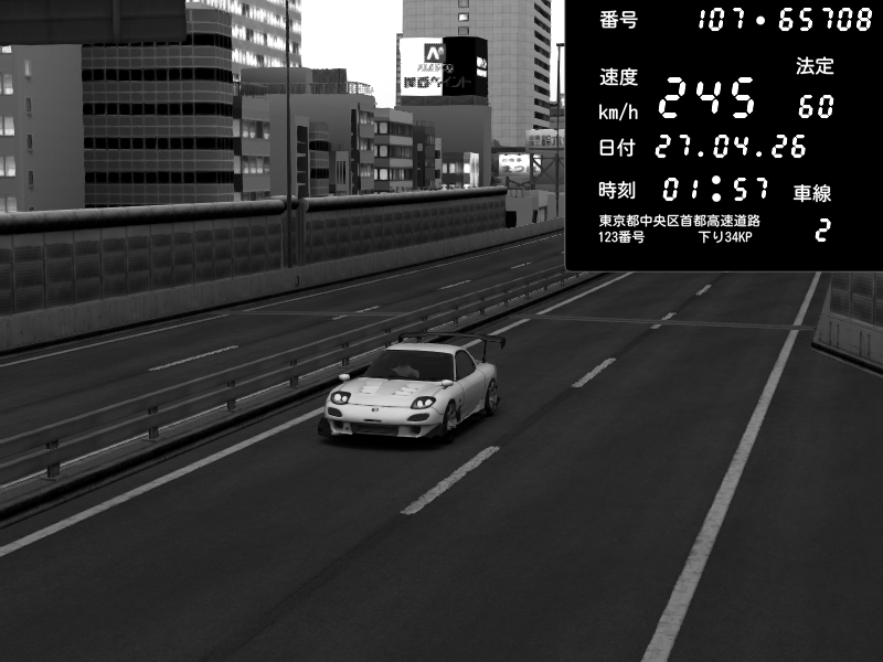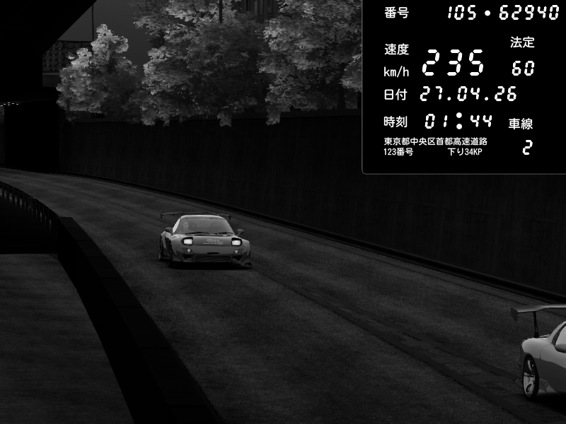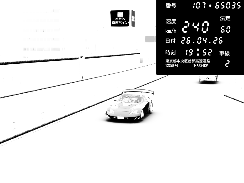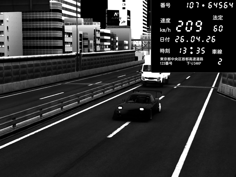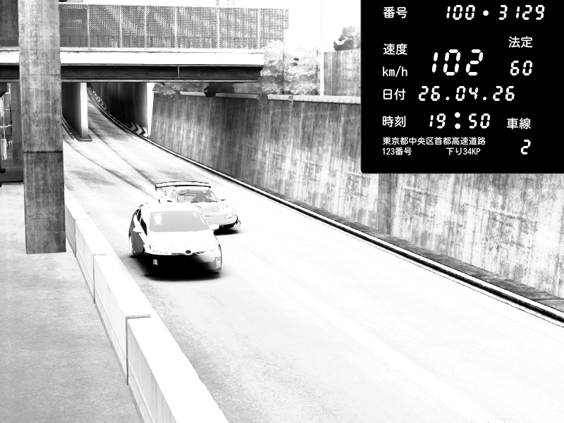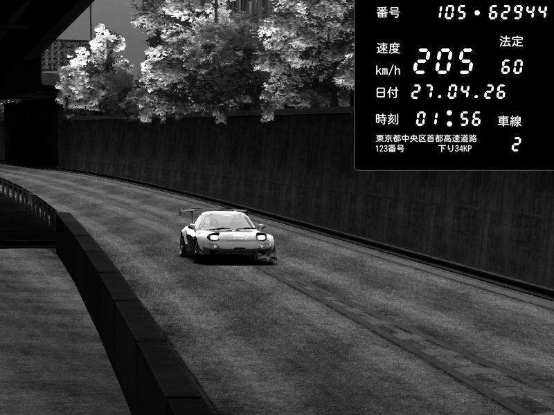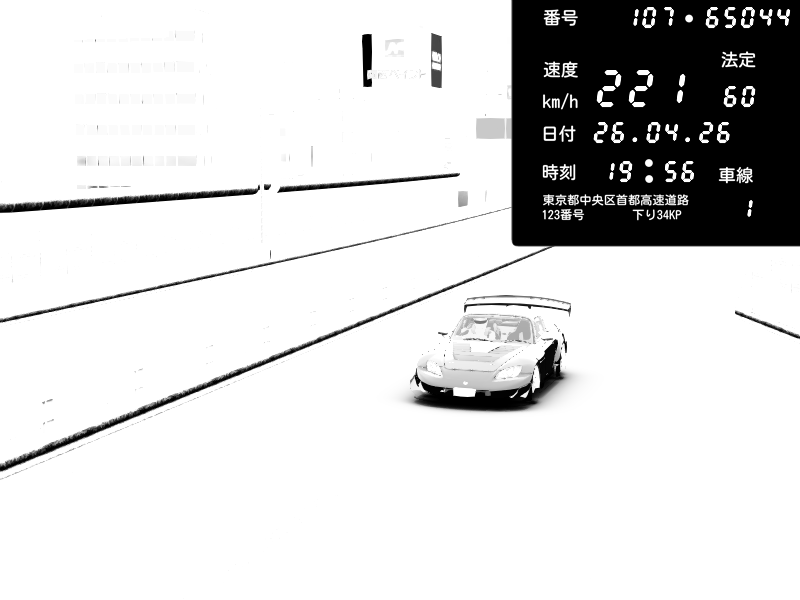 | 2026/04/26 13:17 | C1内回り 竹橋JCT | 100 / 60 km/h | Player | Mazda RX-7 FD3S FEED Afflux GT3 | CAPTURE |