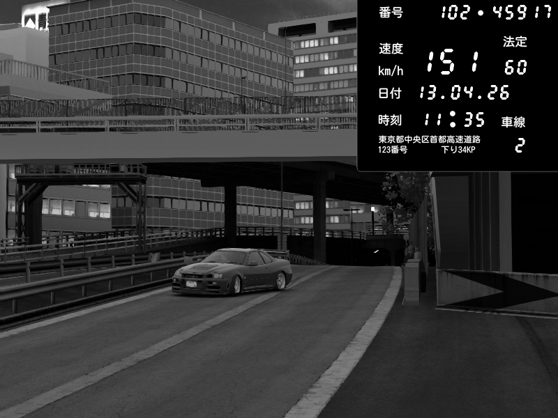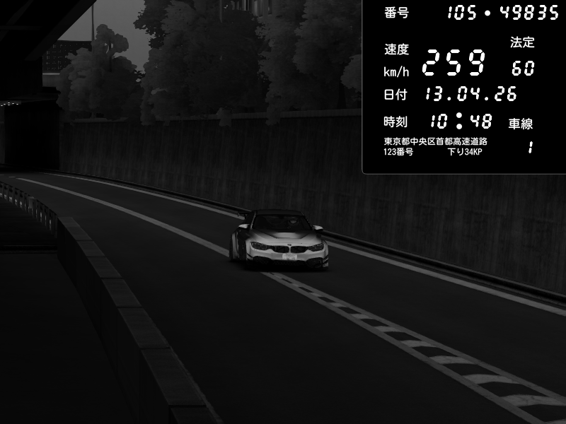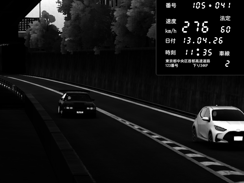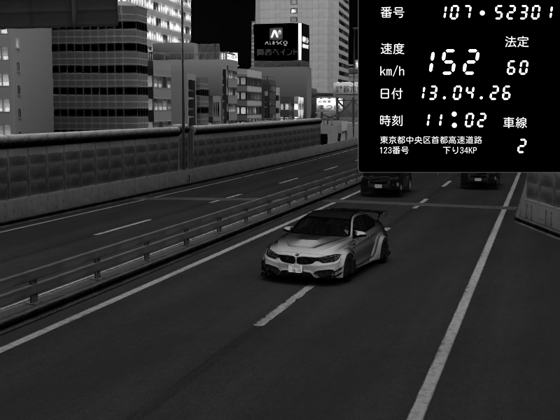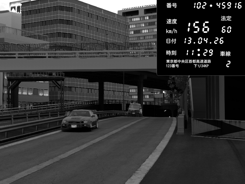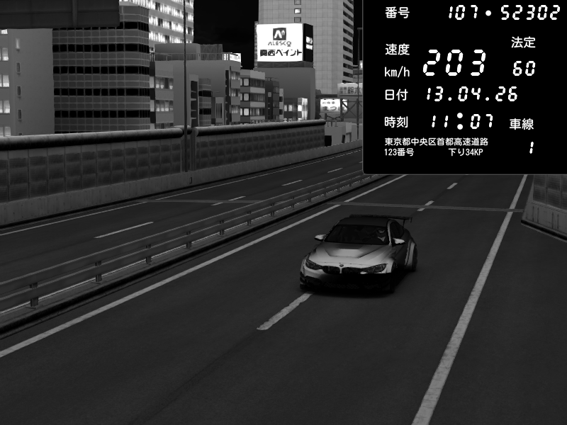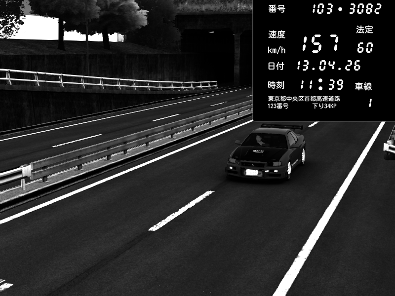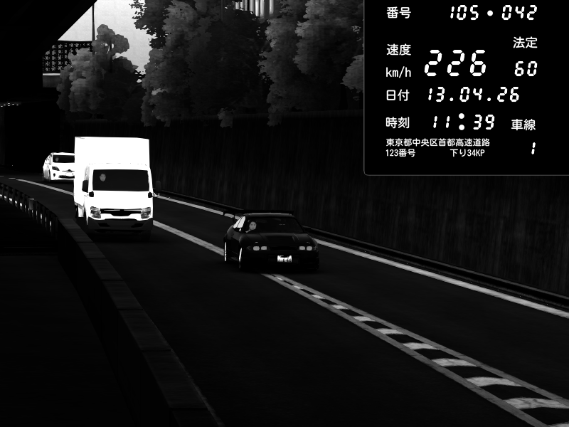 | 2026/04/13 11:30 | C1外回り 新富町 | 164 / 60 km/h | ('A`) | Nissan Skyline GTR R33 (S3 - Wangan) | CAPTURE |