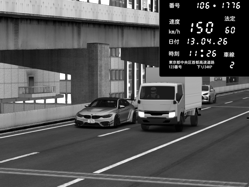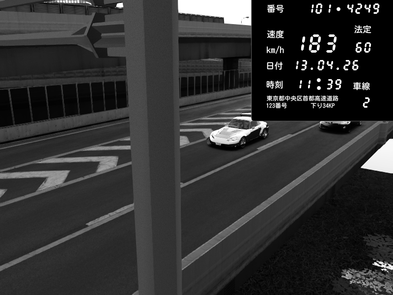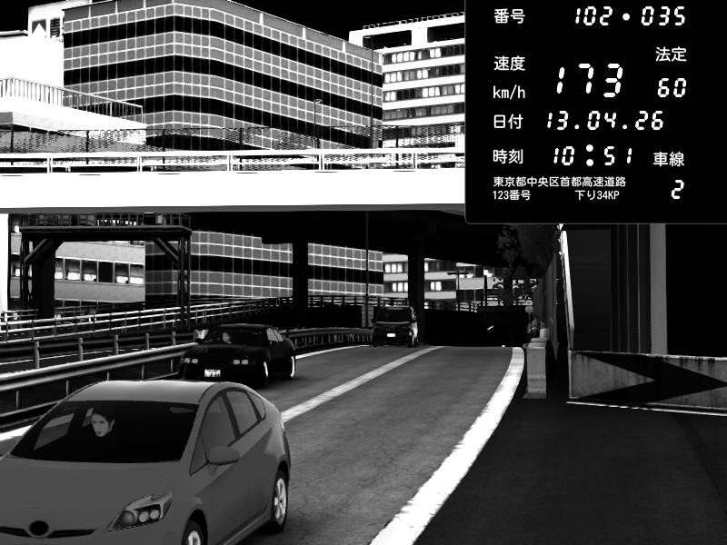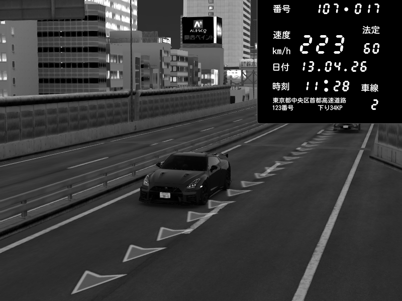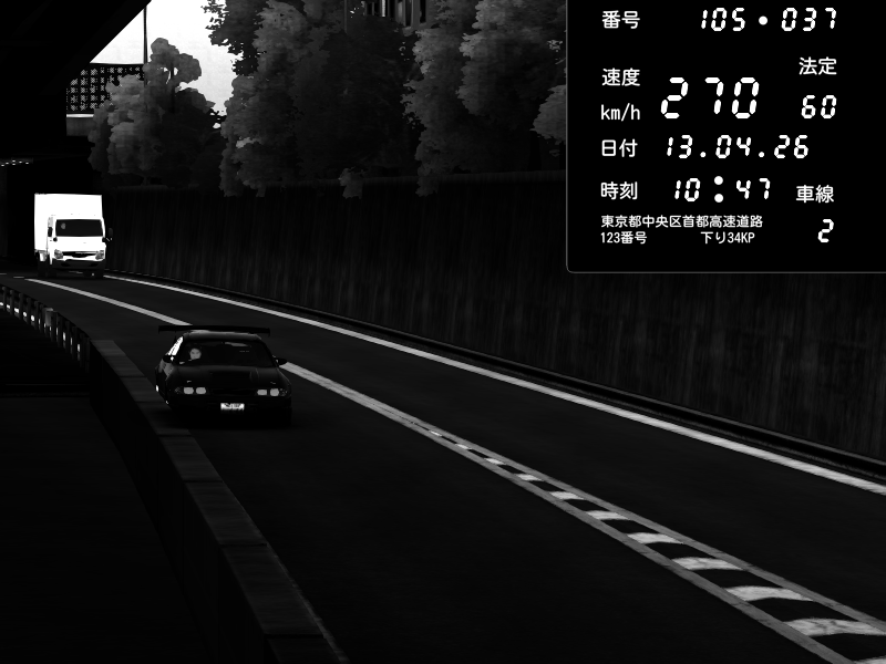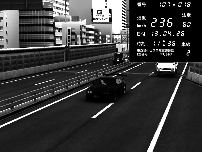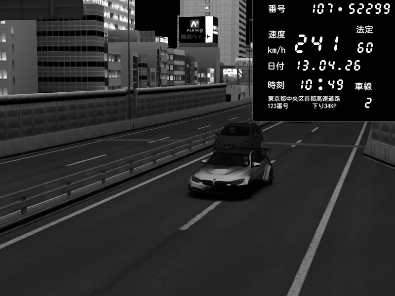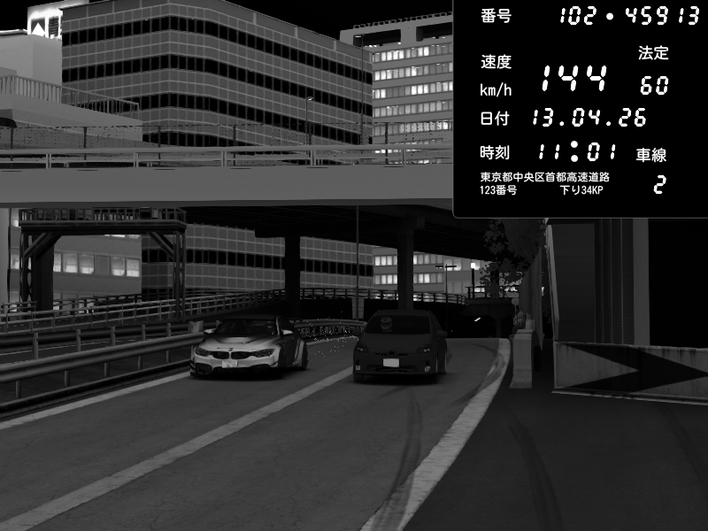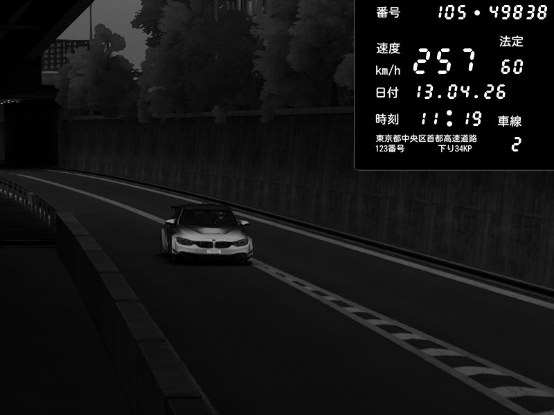 | 2026/04/13 11:30 | C1外回り 新富町 | 164 / 60 km/h | ('A`) | Nissan Skyline GTR R33 (S3 - Wangan) | CAPTURE |