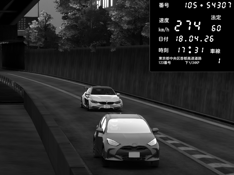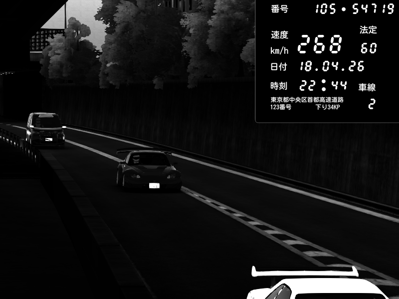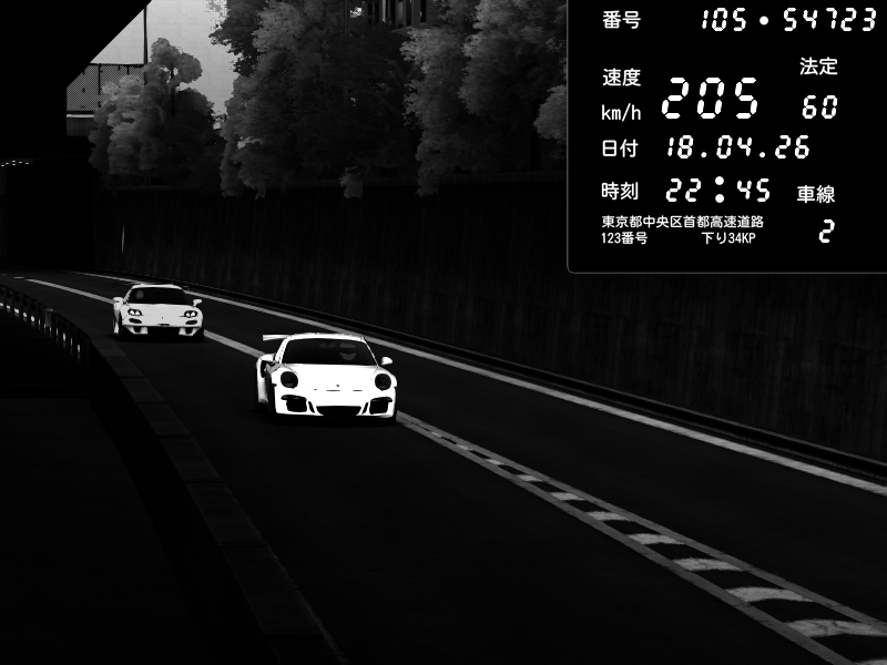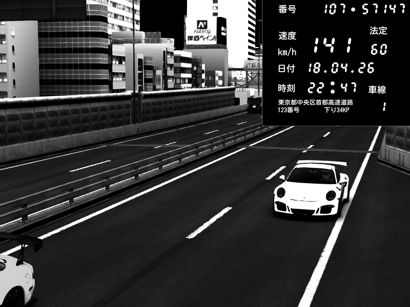 | 2026/04/18 22:45 | C1外回り 新富町 | 198 / 60 km/h | juice | Porsche 911 GT3 RS | CAPTURE |