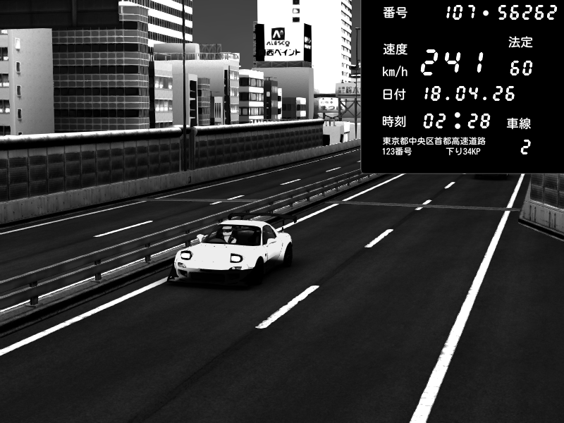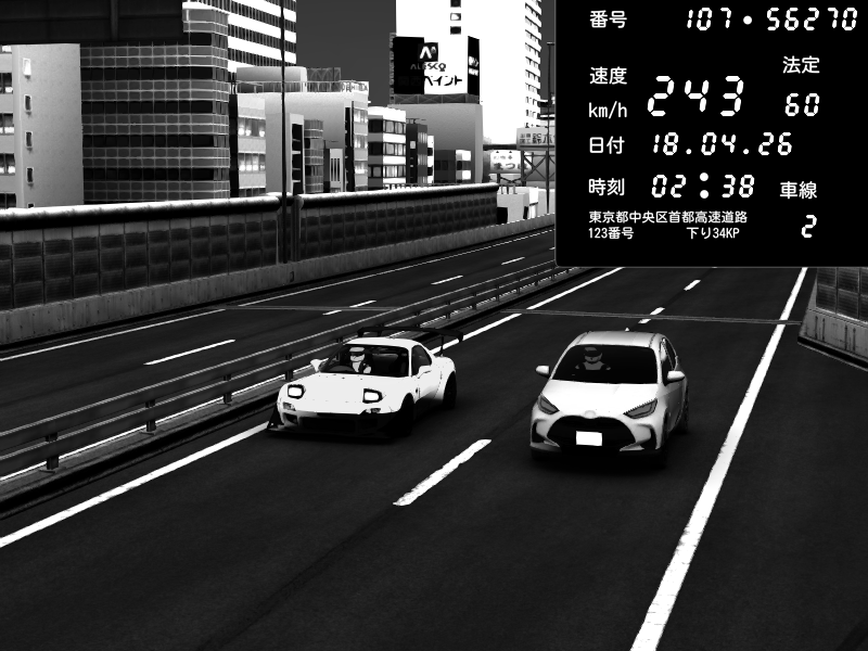 | 2026/04/18 02:33 | C1外回り 京橋 | 180 / 60 km/h | 🔰kurokami | Mazda RX-7 FD3S FEED Afflux GT3 | CAPTURE |
