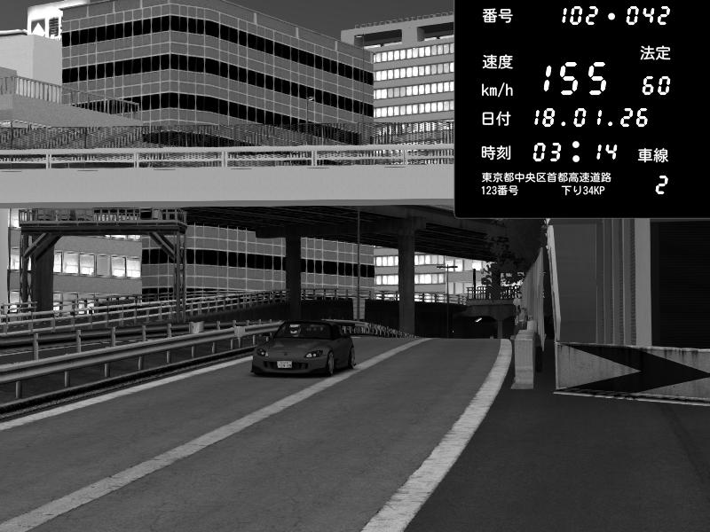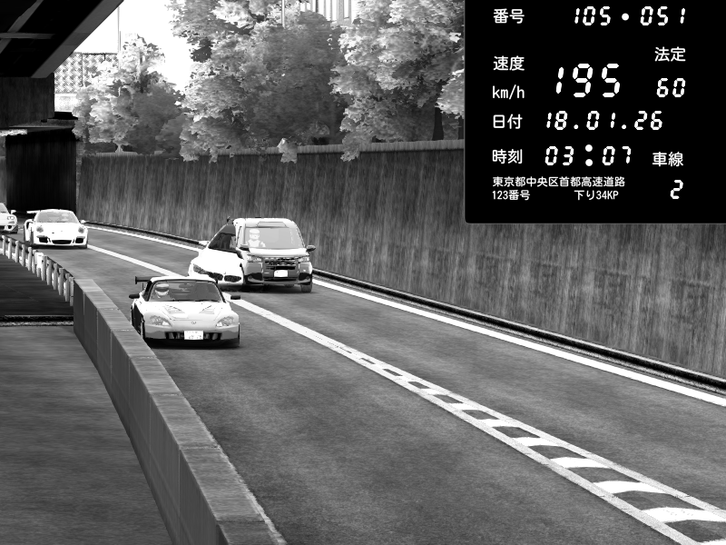 | 2026/01/18 03:07 | C1外回り 京橋 | 195 / 60 km/h | Mela | Honda S2000 (AP2 - Legendary) | CAPTURE |