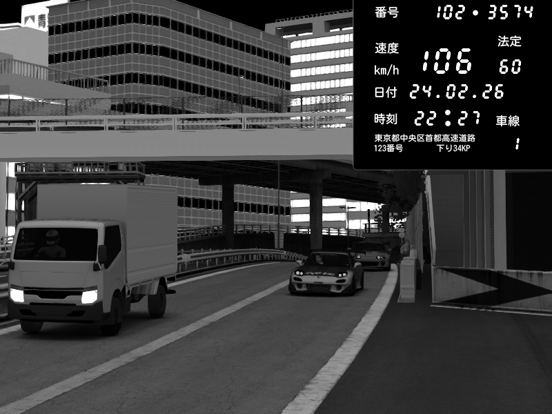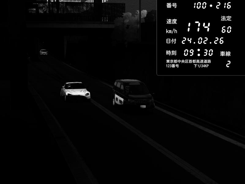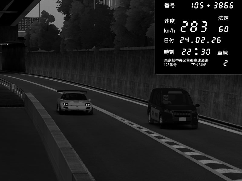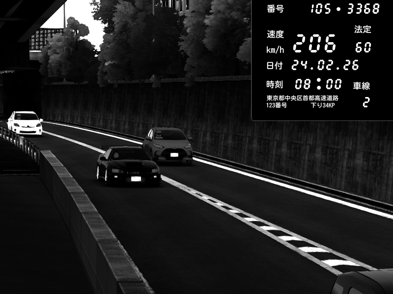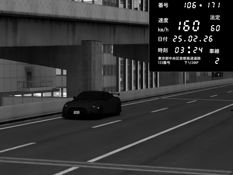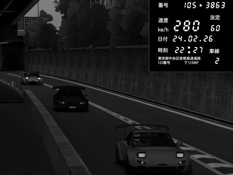| 2026/02/24 22:33 | C1外回り 京橋 | 276 / 60 km/h | Andojun | Pit Road M - Mitsubishi GTO Twin Turbo | CAPTURE |