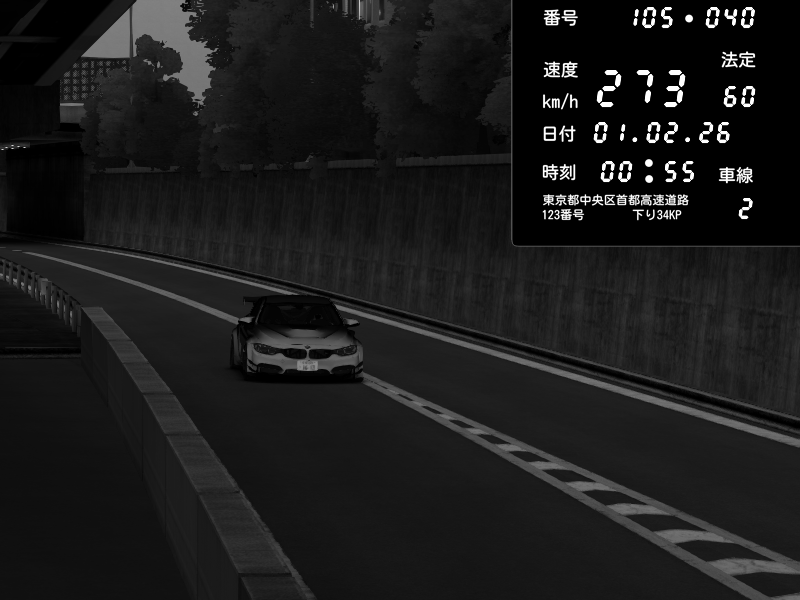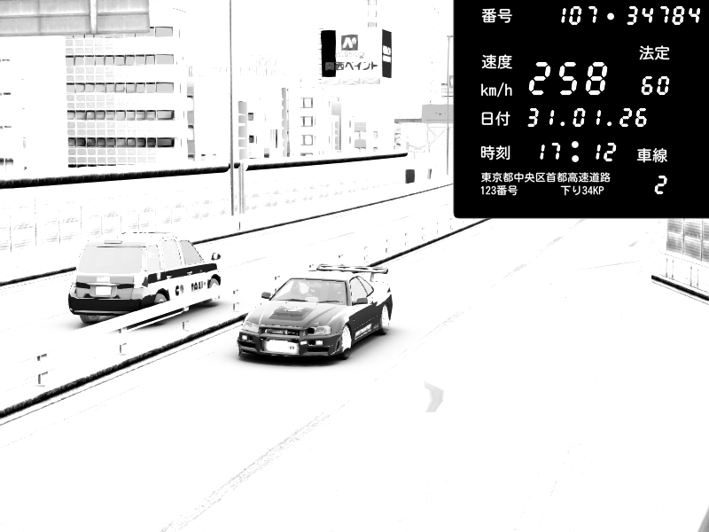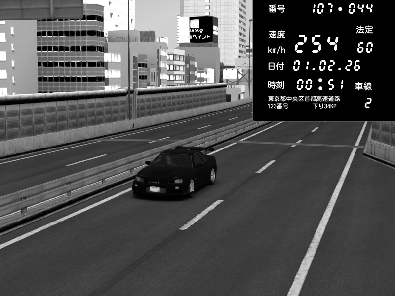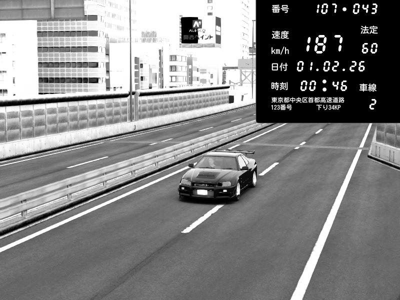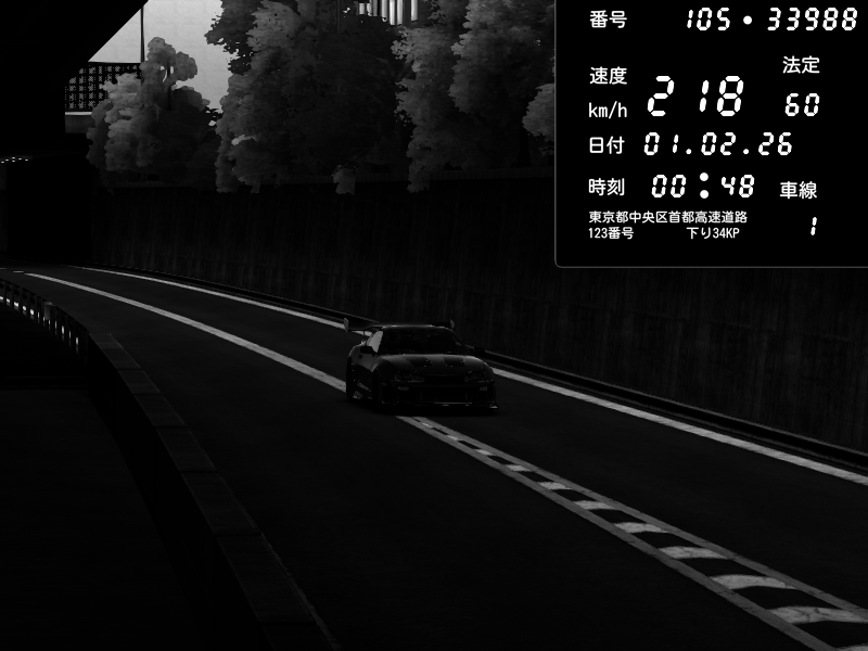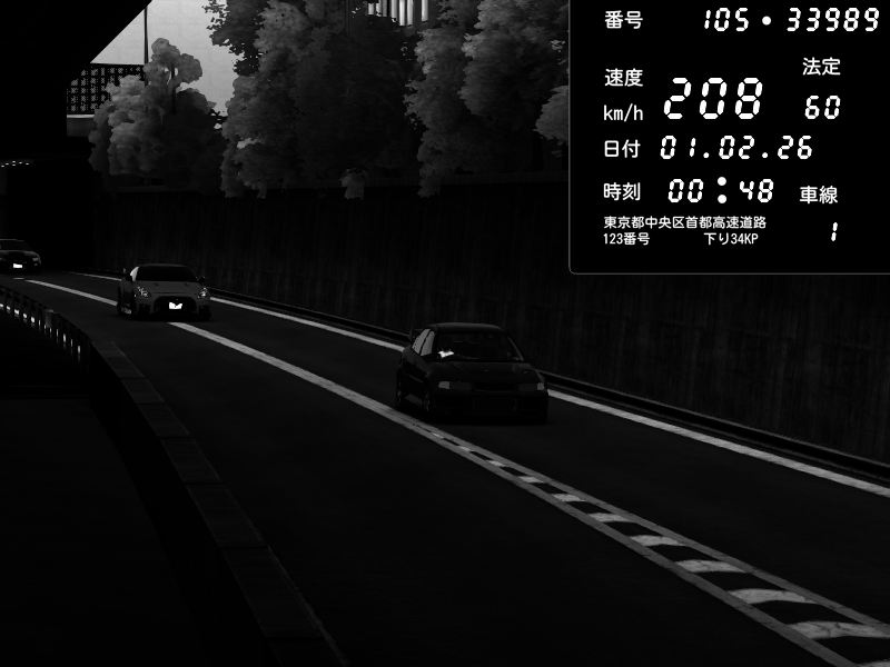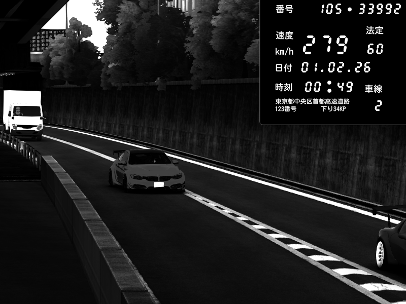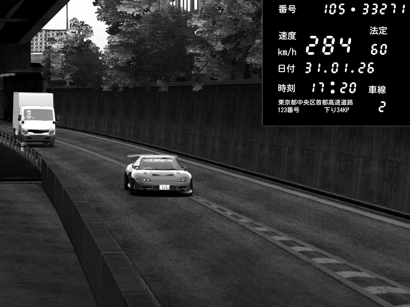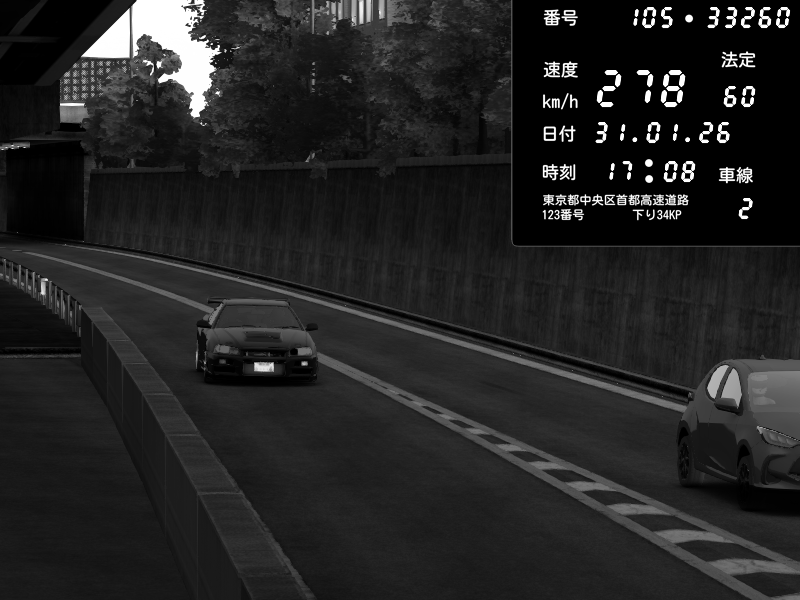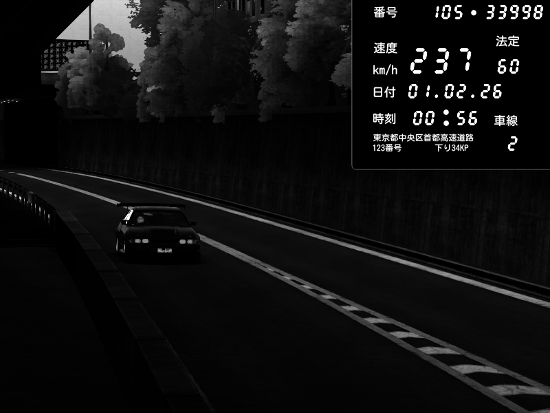 | 2026/02/01 00:47 | C1外回り 京橋 | 271 / 60 km/h | SHOW5 | Nissan Skyline GTR R33 (S3 - Wangan) | CAPTURE |
