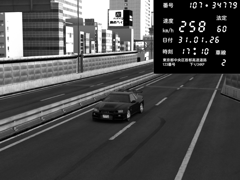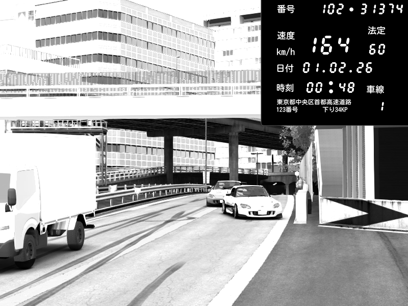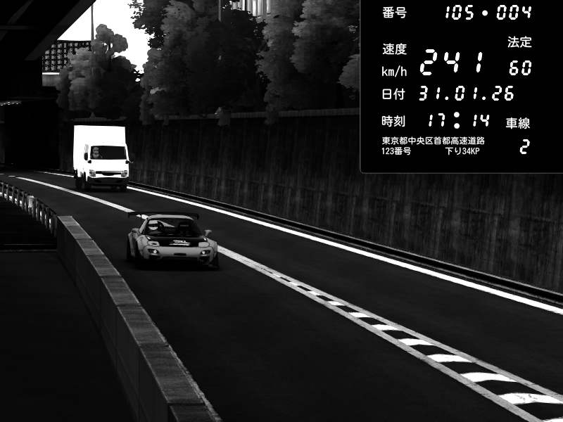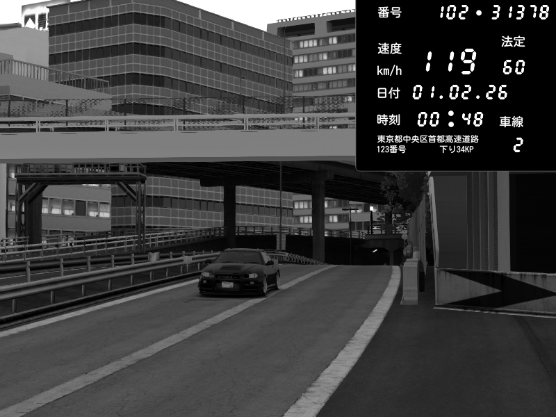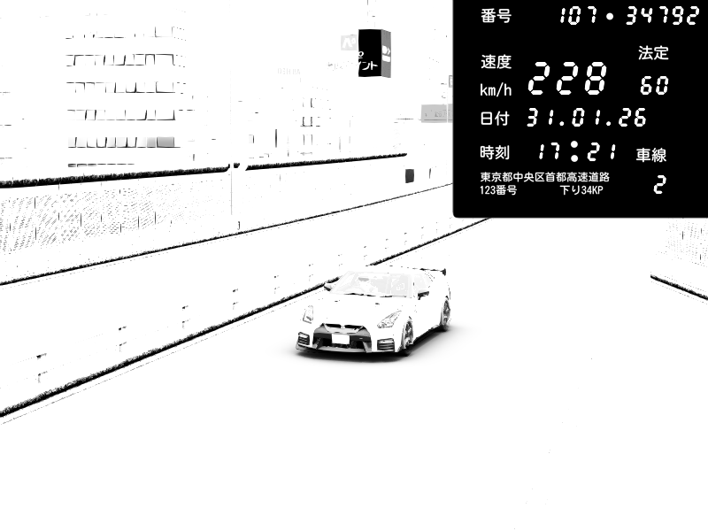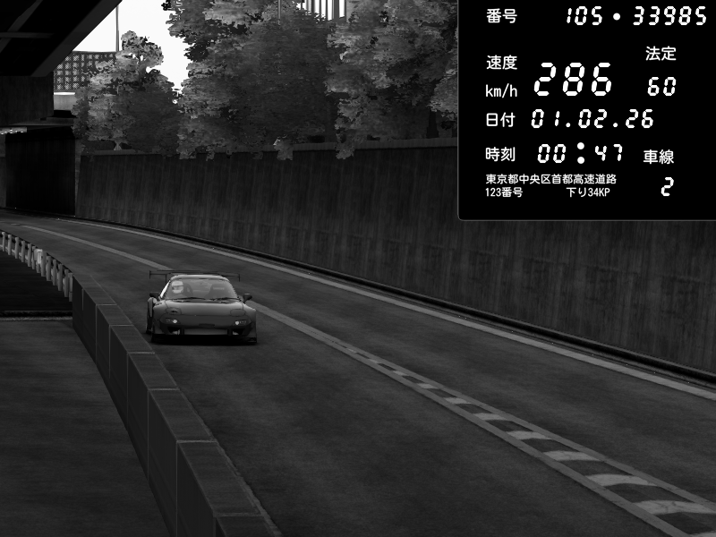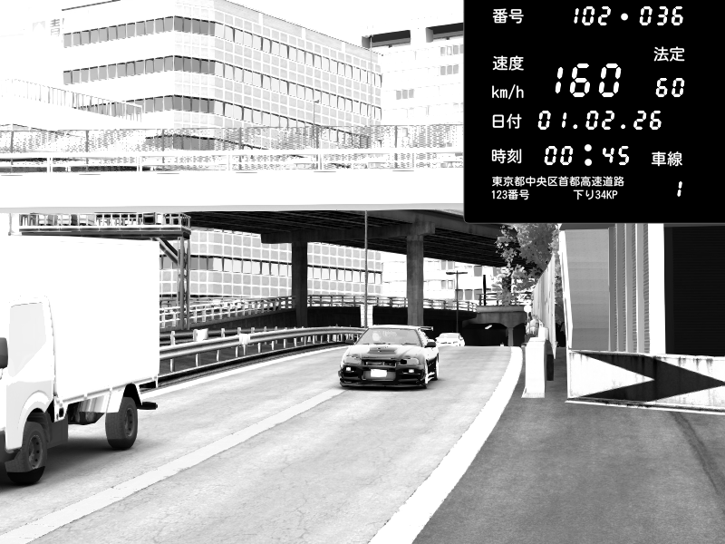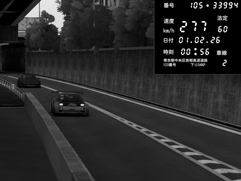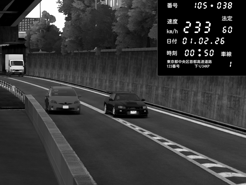 | 2026/02/01 00:47 | C1外回り 京橋 | 271 / 60 km/h | SHOW5 | Nissan Skyline GTR R33 (S3 - Wangan) | CAPTURE |