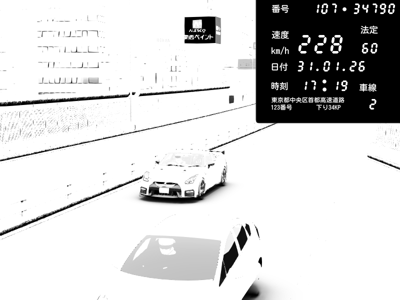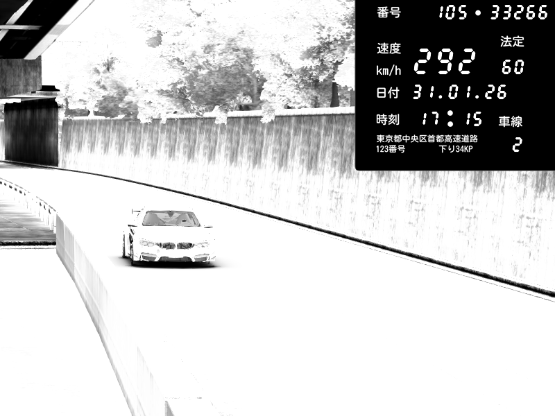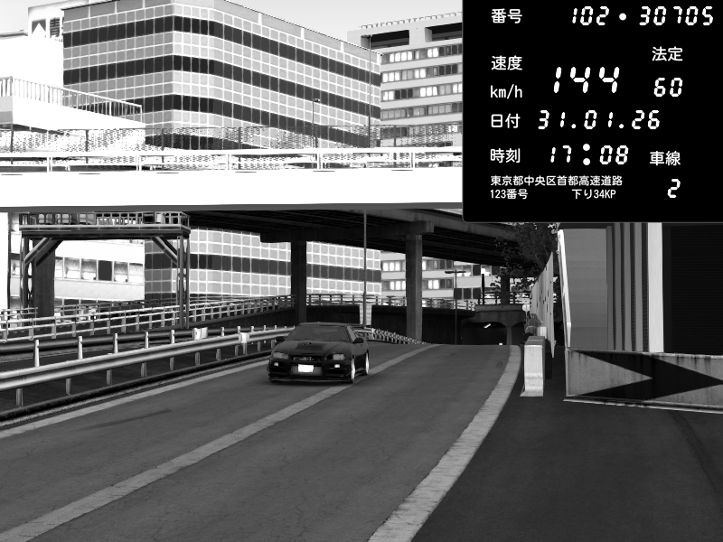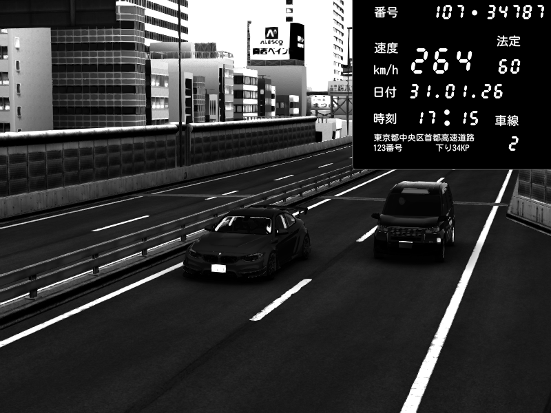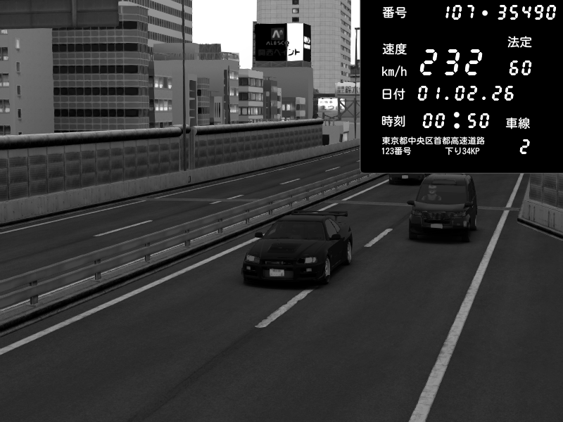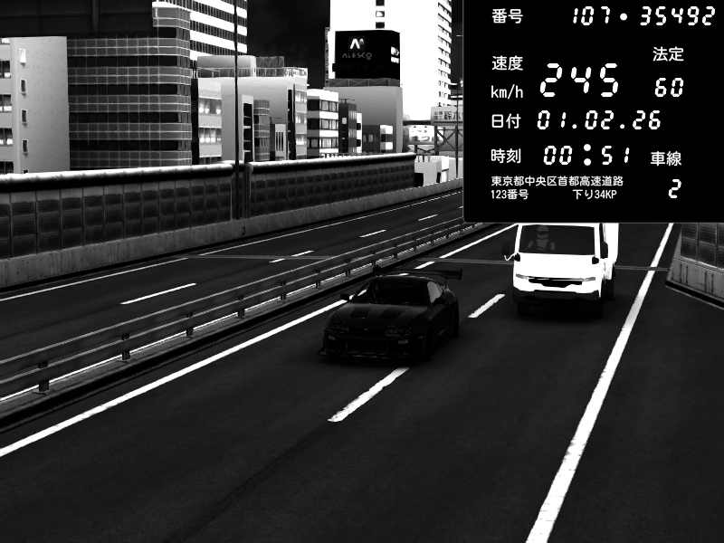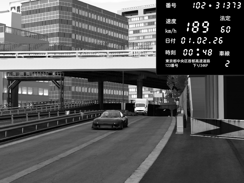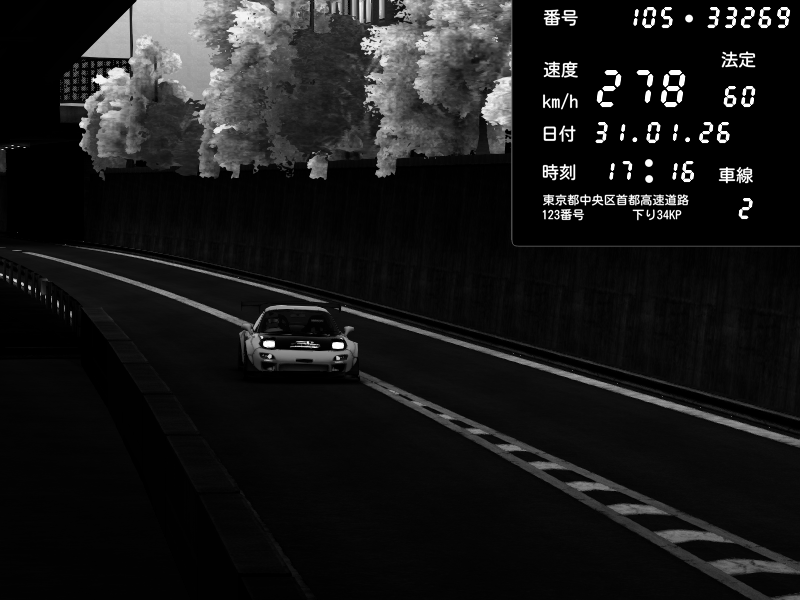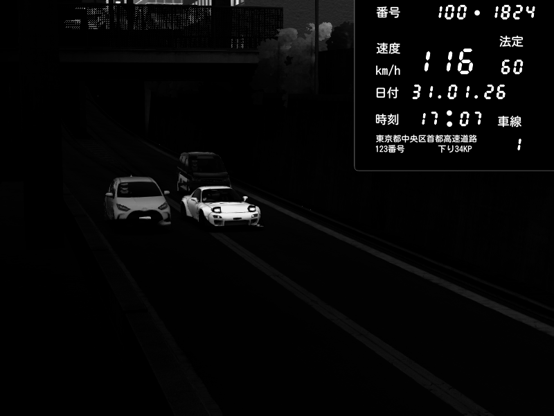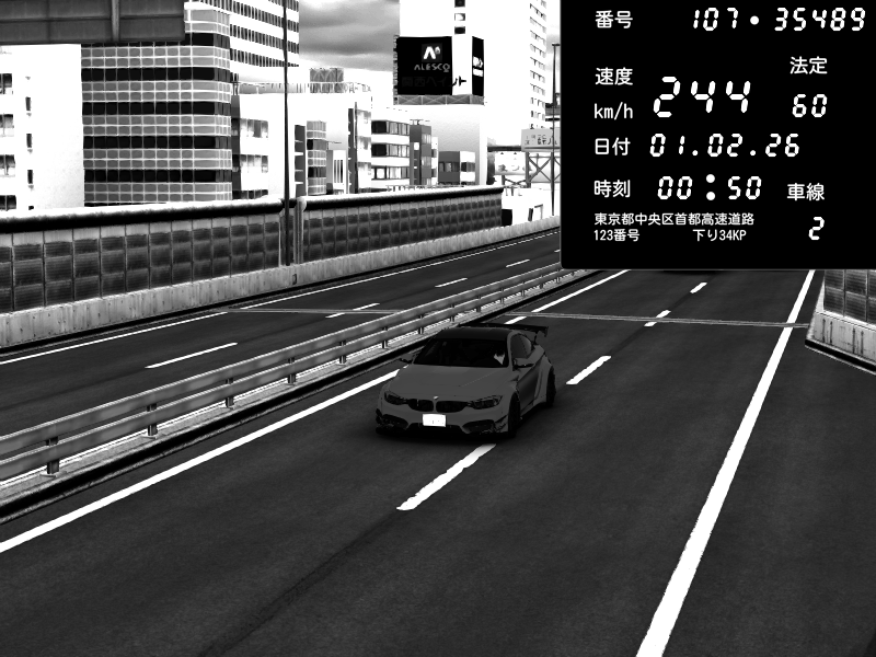 | 2026/02/01 00:47 | C1外回り 京橋 | 271 / 60 km/h | SHOW5 | Nissan Skyline GTR R33 (S3 - Wangan) | CAPTURE |