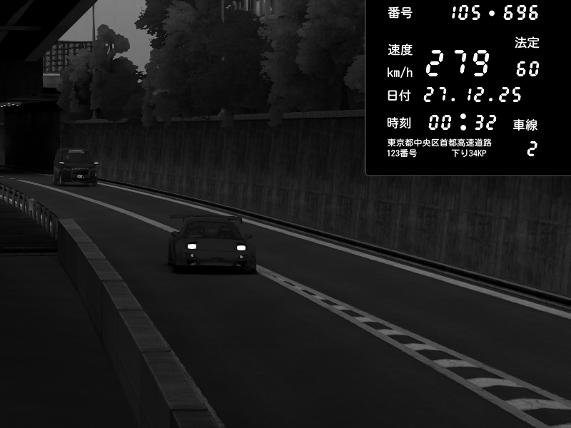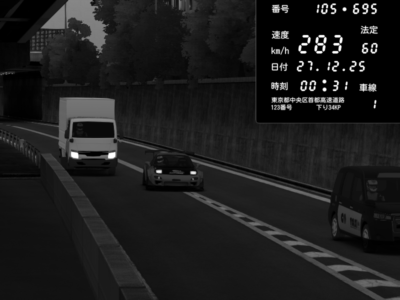 | 2025/12/27 00:32 | C1外回り 京橋 | 282 / 60 km/h | monaco-911senna | Mazda RX-7 FD3S FEED Afflux GT3 | CAPTURE |