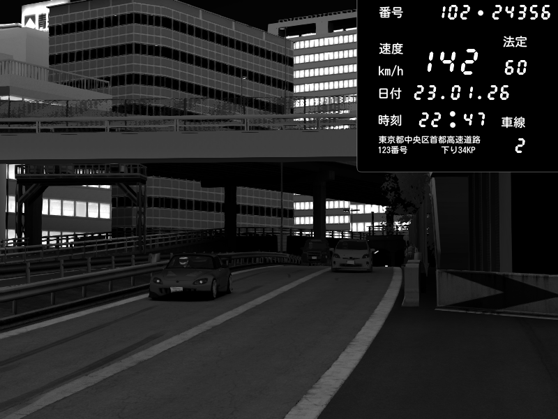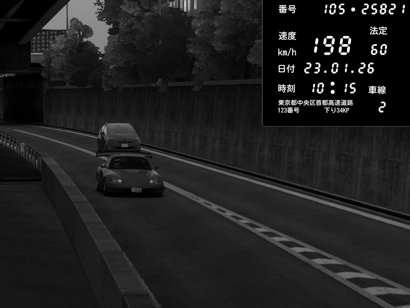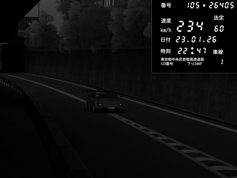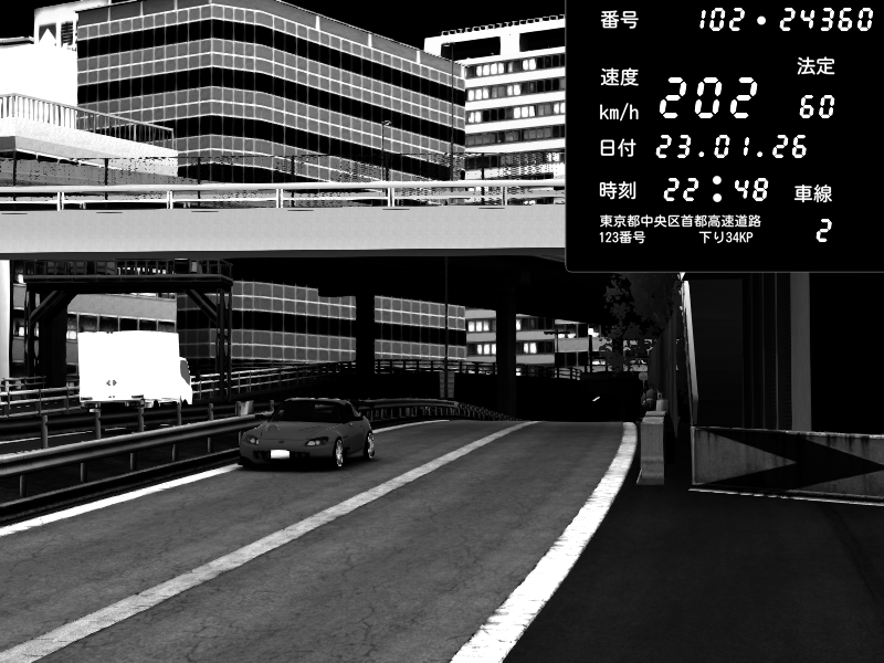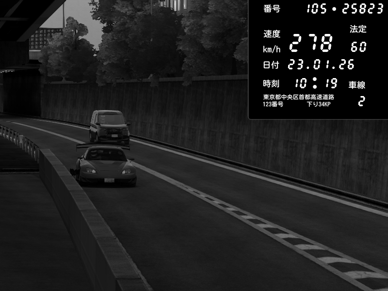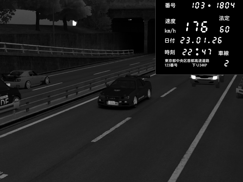 | 2026/01/23 22:46 | C1外回り 新富町 | 187 / 60 km/h | G29(LUT)&32TV60Hz3画面老人晩酌中 | Honda S2000 Turbo GT1 Amuse (AP1) | CAPTURE |
