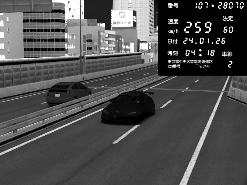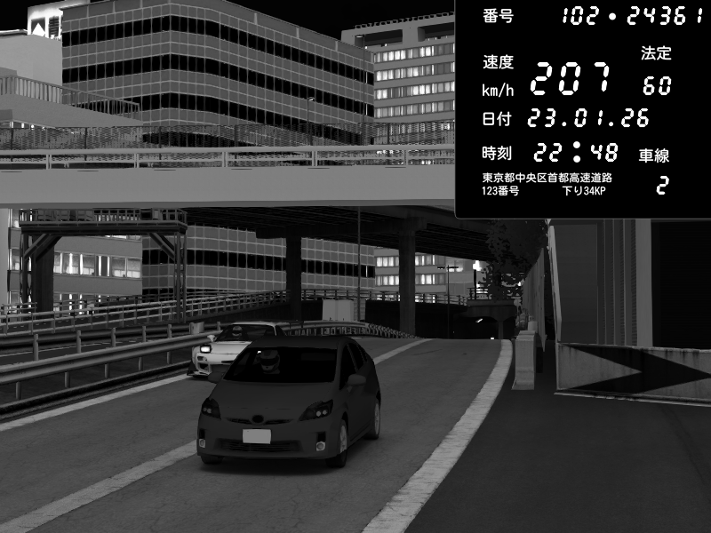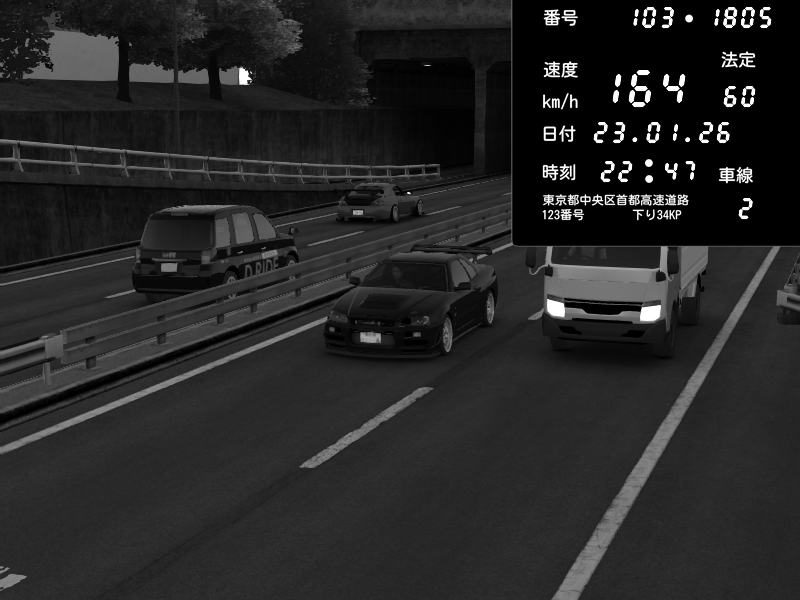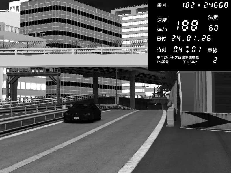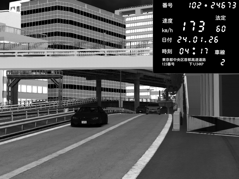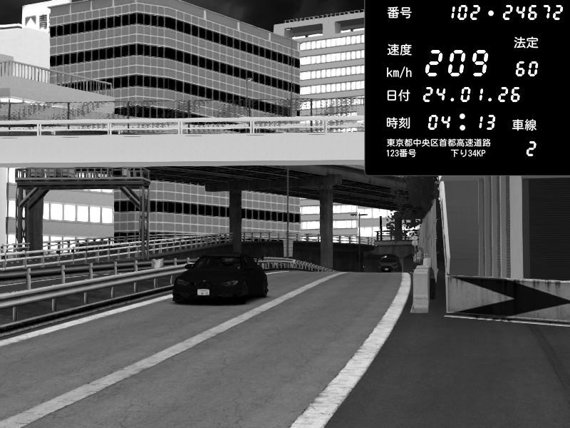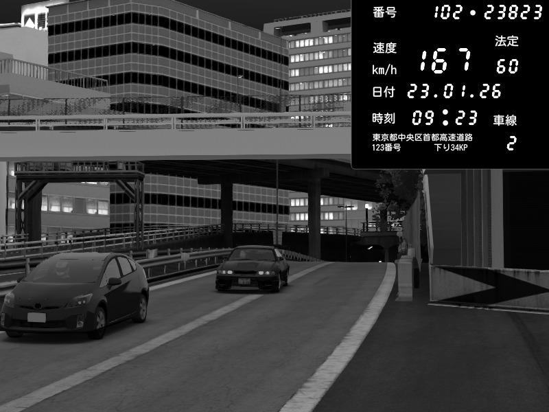 | 2026/01/23 22:46 | C1外回り 新富町 | 187 / 60 km/h | G29(LUT)&32TV60Hz3画面老人晩酌中 | Honda S2000 Turbo GT1 Amuse (AP1) | CAPTURE |