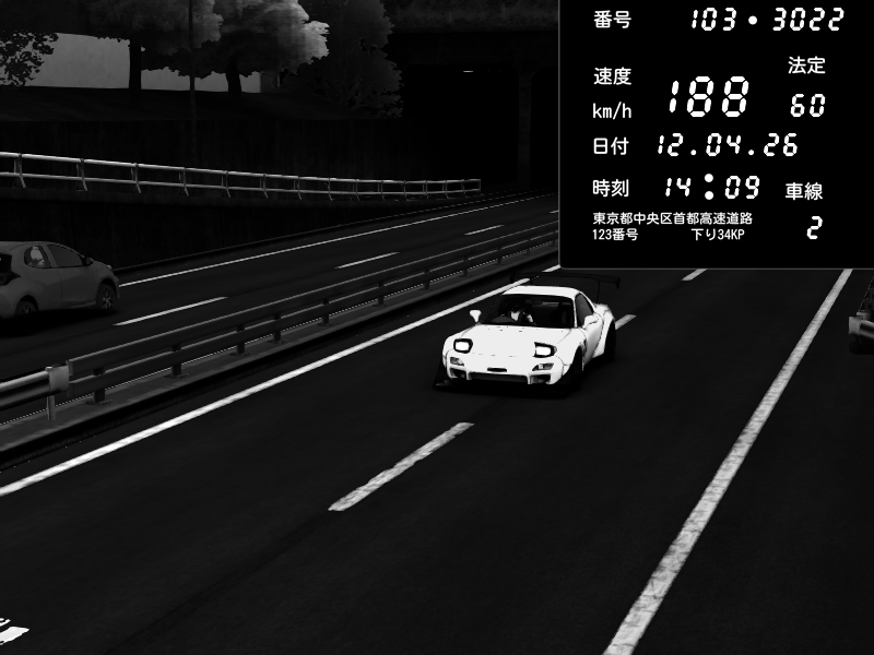| 2026/04/12 22:55 | C1外回り 新富町 | 202 / 60 km/h | gako | Mazda RX-7 FD3S FEED Afflux GT3 | CAPTURE |