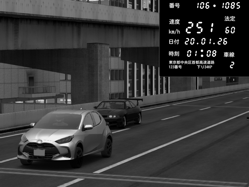 | 2026/01/19 04:49 | C1外回り 京橋 | 258 / 60 km/h | ojisandtift | Honda S2000 (AP2 - Legendary) | CAPTURE |