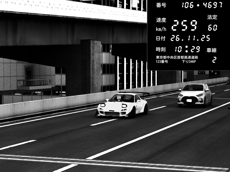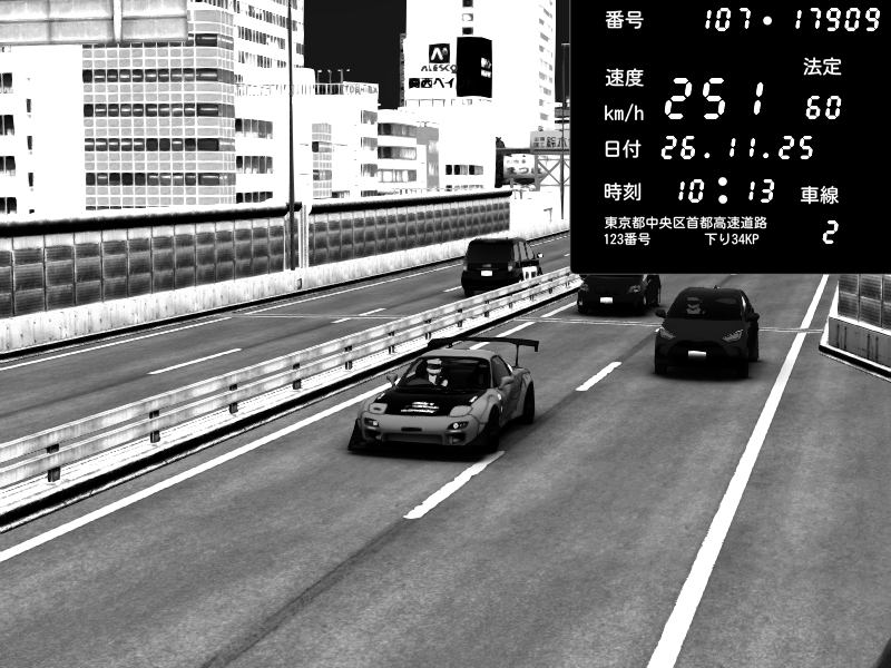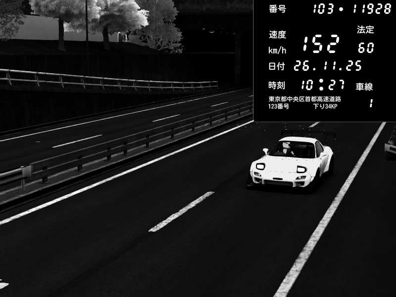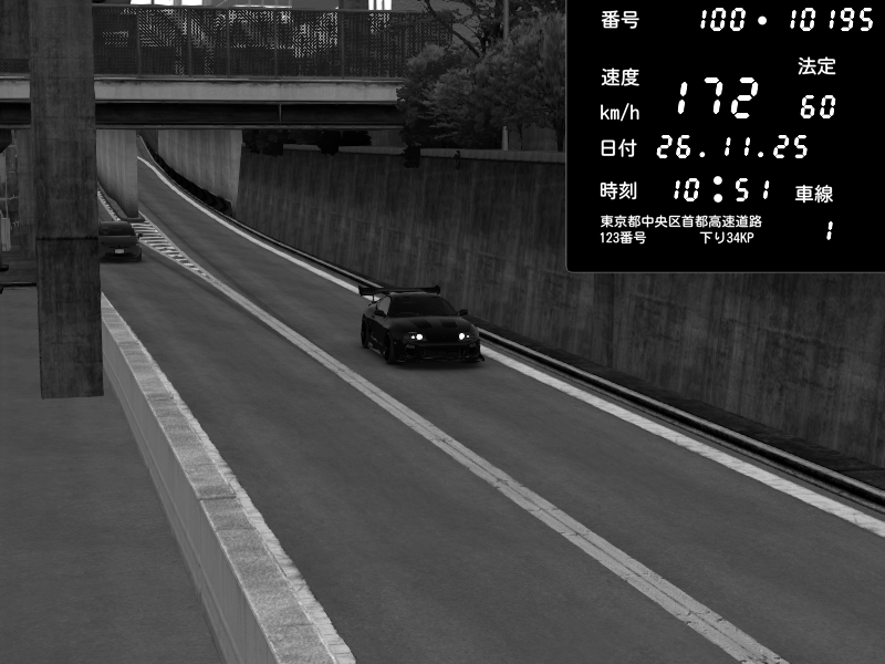 | 2025/11/26 10:33 | C1外回り 京橋 | 265 / 60 km/h | Jeus | Mazda RX-7 FD3S FEED Afflux GT3 | CAPTURE |