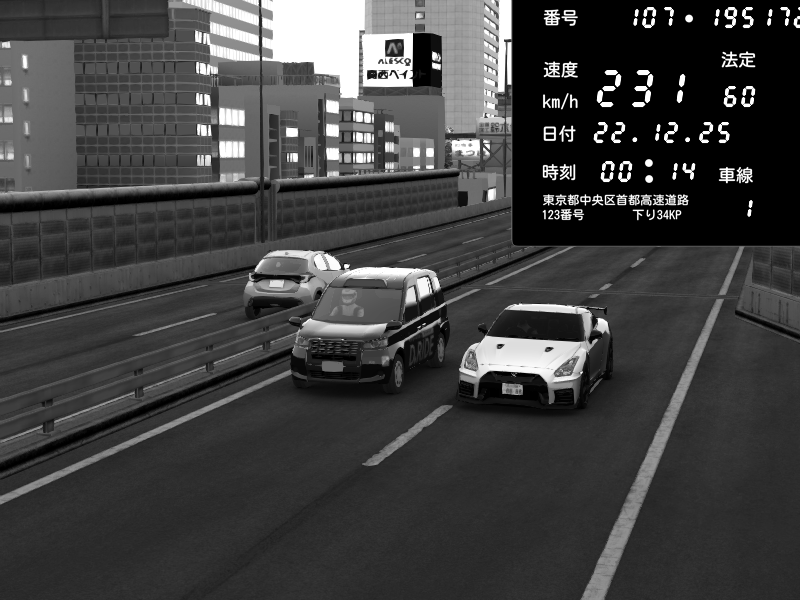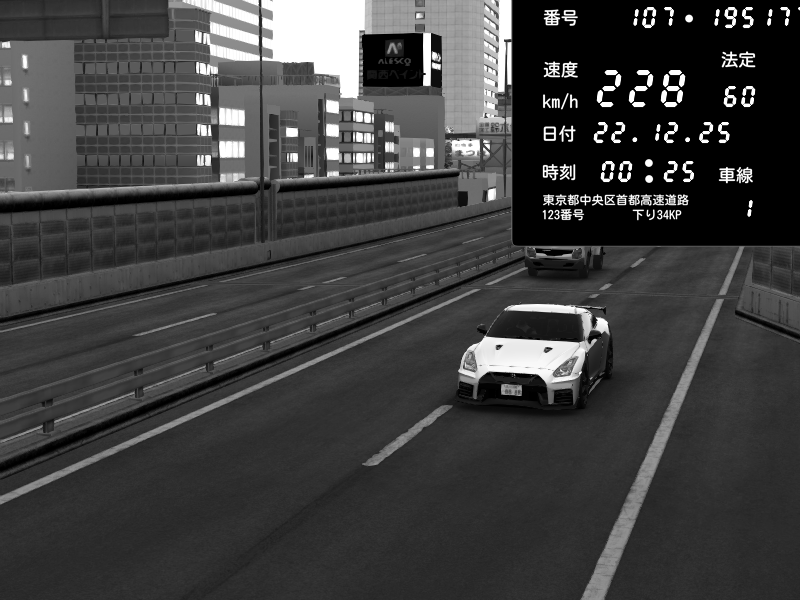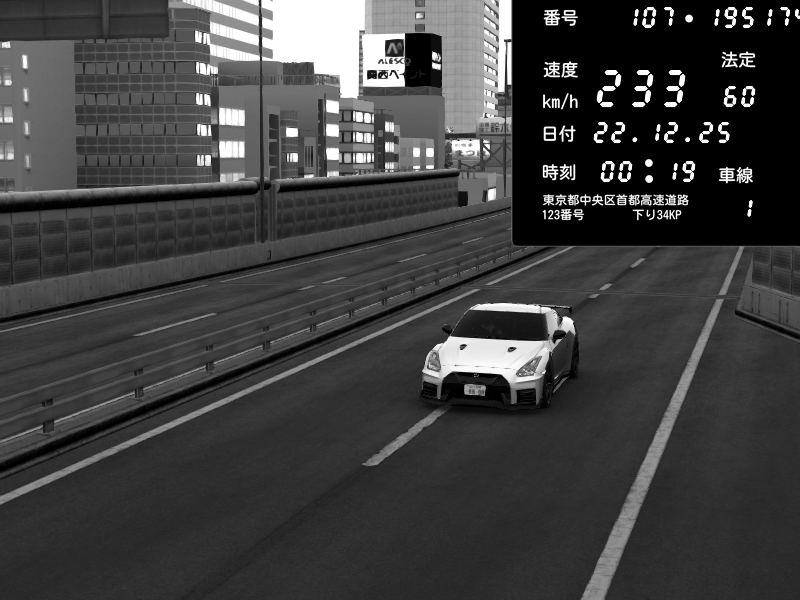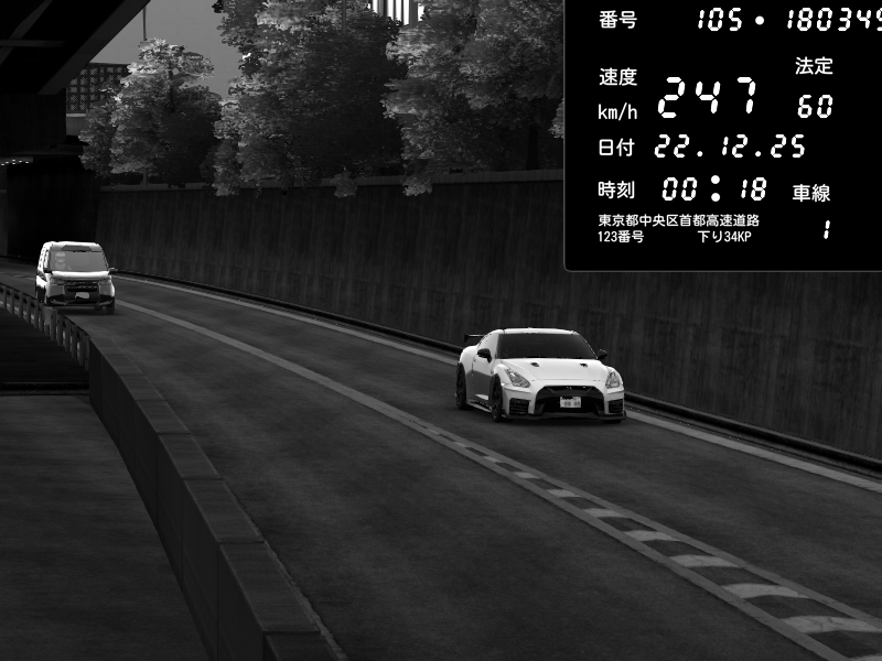 | 2025/12/22 00:19 | C1外回り 芝公園 | 233 / 60 km/h | CorgiOnFleek | Nissan GT-R NISMO 2017 | CAPTURE |