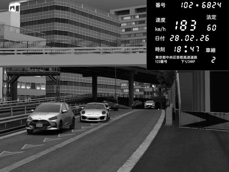 | 2026/03/01 05:44 | C1内回り 銀座 | 203 / 60 km/h | Ninja🖥️🖥️🖥️(32TV60Hz) | Honda S2000 Turbo GT1 Amuse (AP1) | CAPTURE |