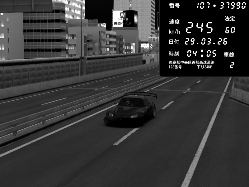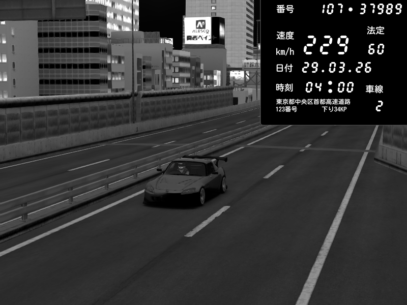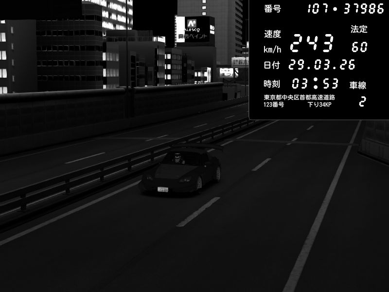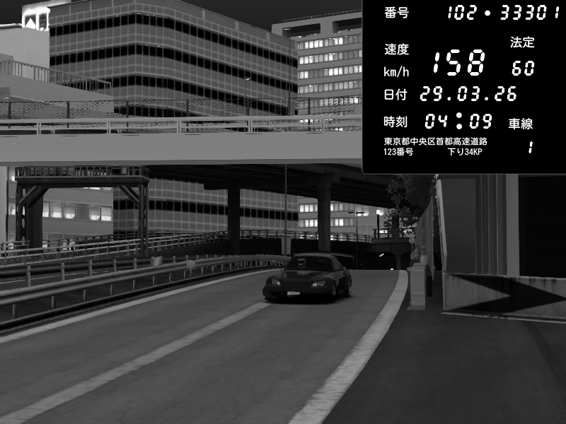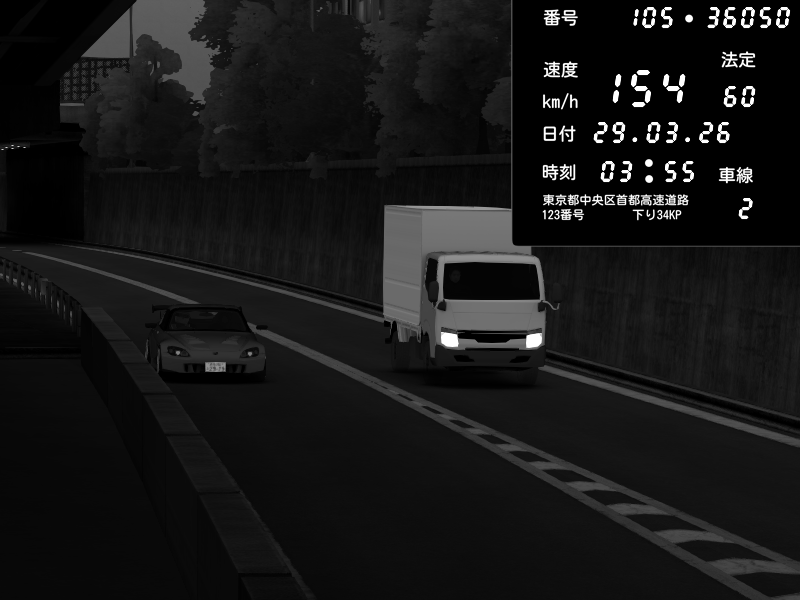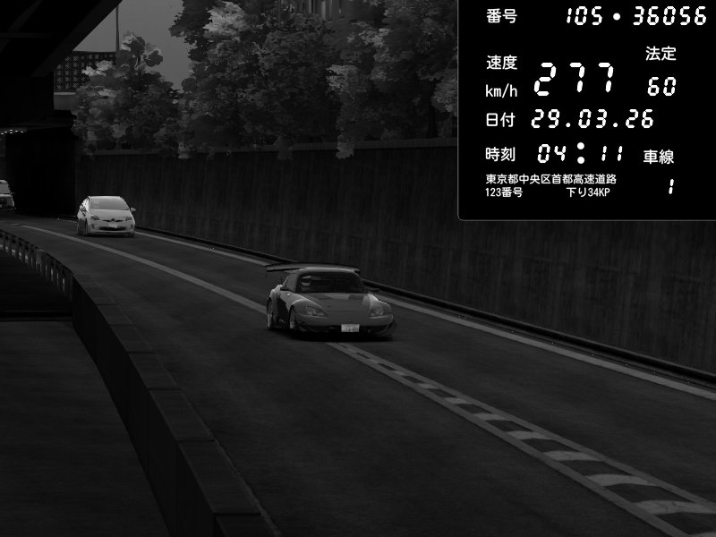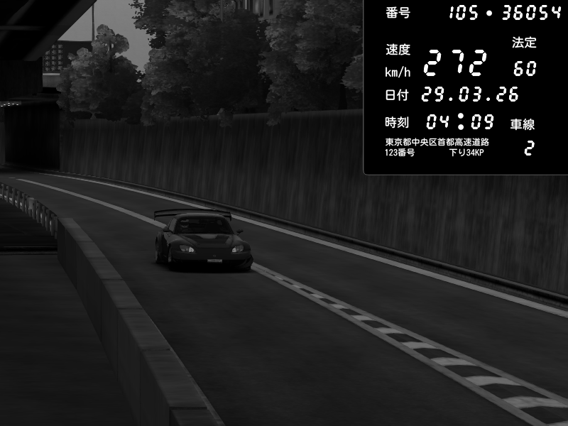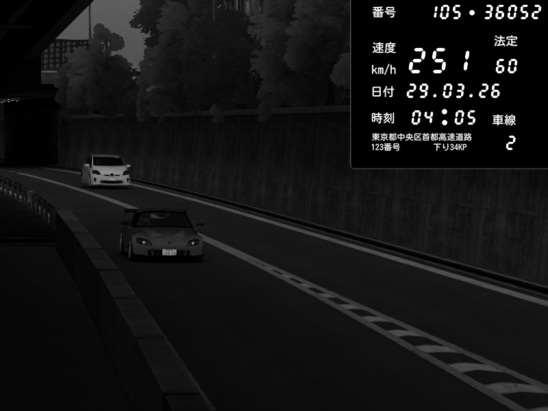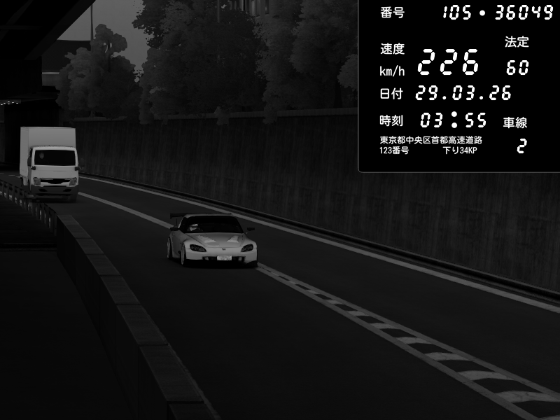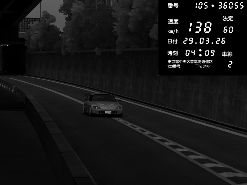 | 2026/03/29 04:09 | C1外回り 京橋 | 138 / 60 km/h | hayato | Honda S2000 (AP2 - Legendary) | CAPTURE |