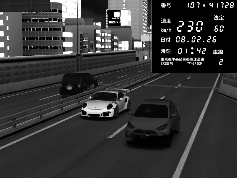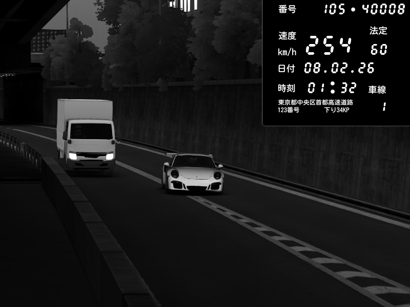 | 2026/02/08 01:32 | C1外回り 京橋 | 254 / 60 km/h | hi_im_noob | Porsche 911 GT3 RS | CAPTURE |