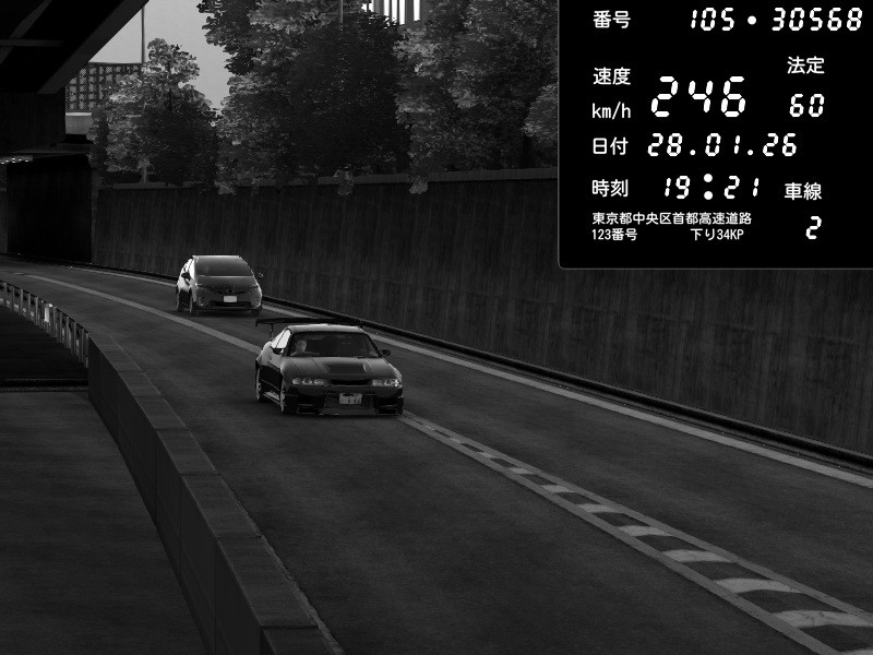 | 2026/01/28 19:21 | C1外回り 京橋 | 246 / 60 km/h | 2612 | Nissan Skyline GTR R33 (S3 - Wangan) | CAPTURE |