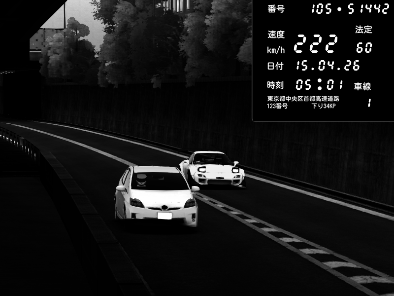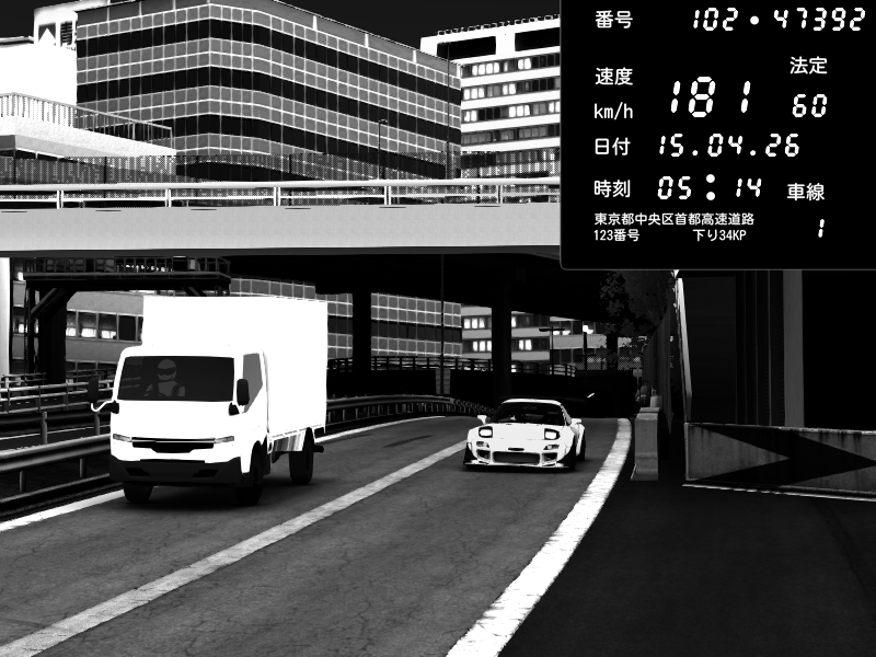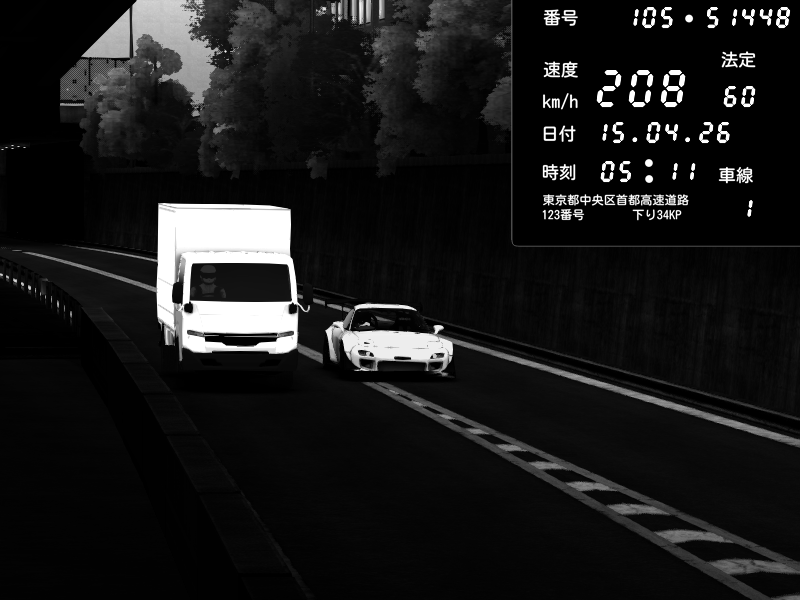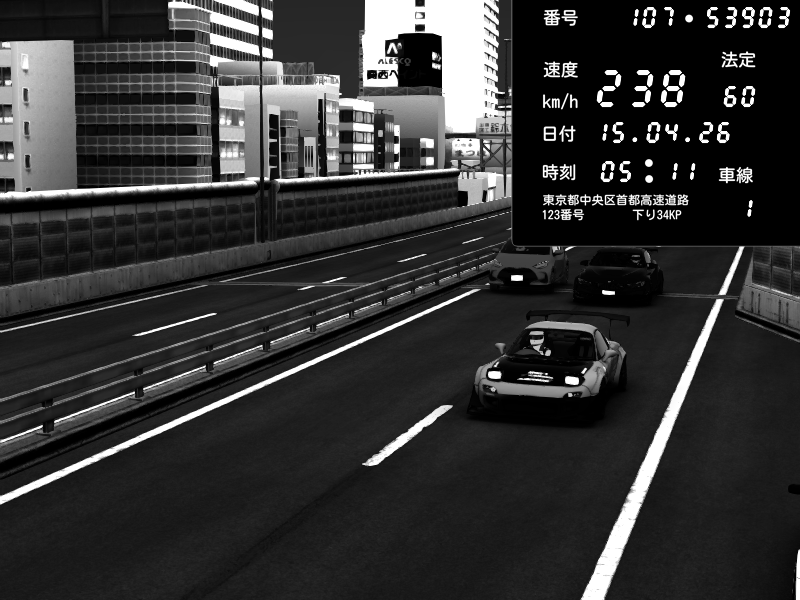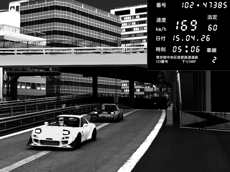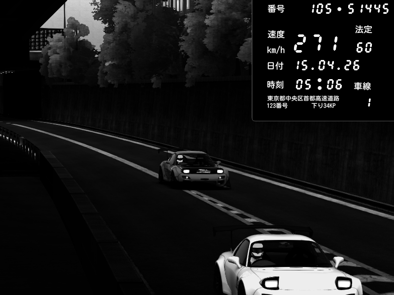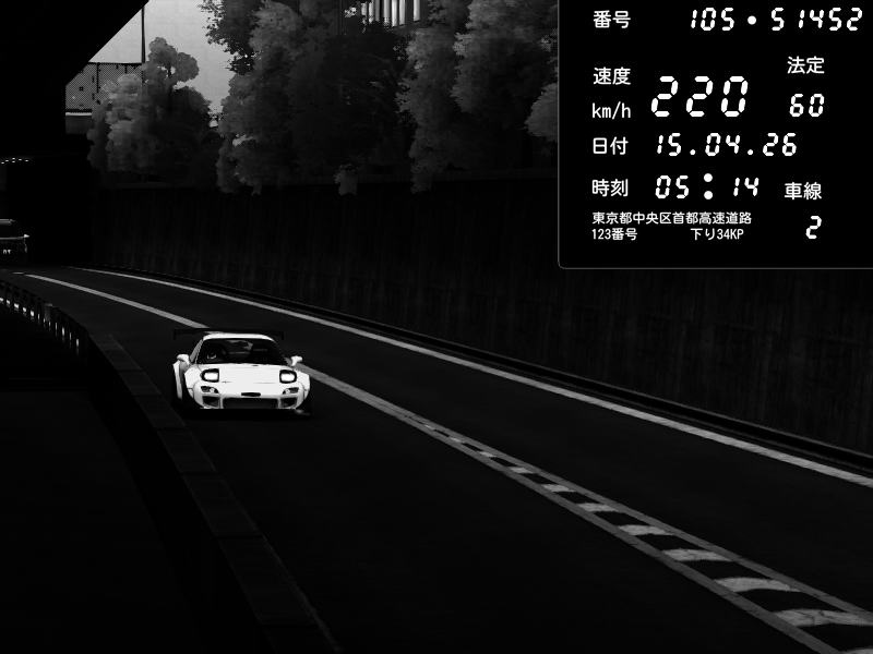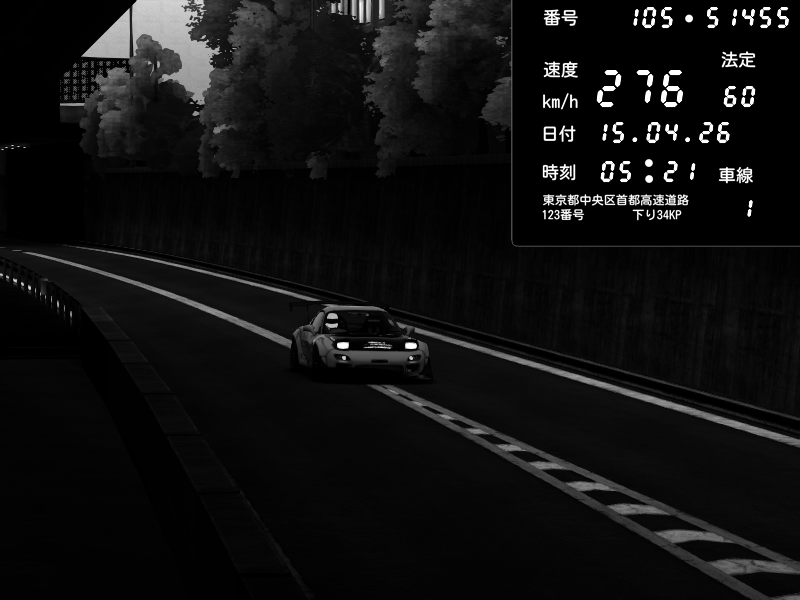 | 2026/04/15 05:11 | C1外回り 京橋 | 208 / 60 km/h | CRAYTOS | Mazda RX-7 FD3S FEED Afflux GT3 | CAPTURE |