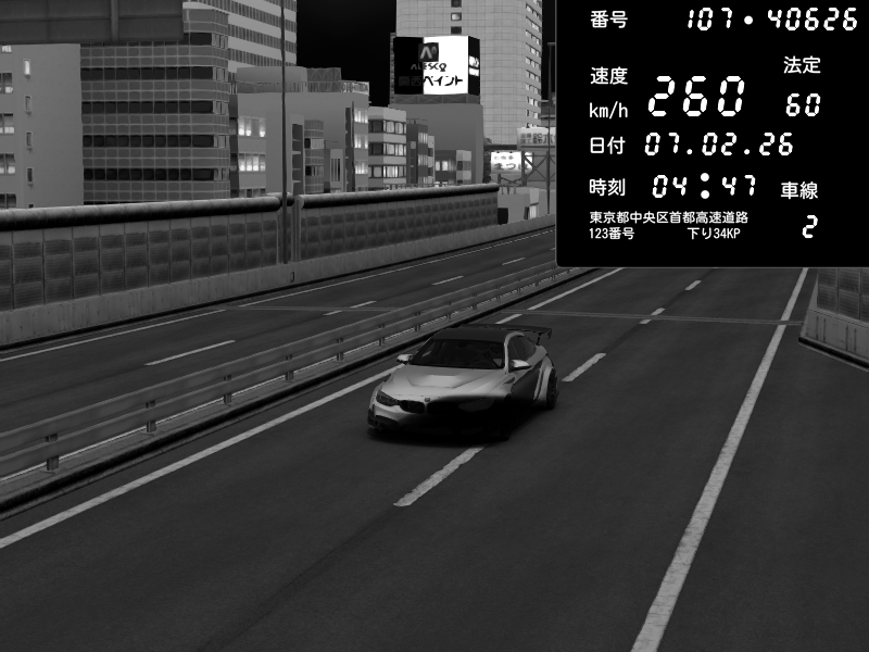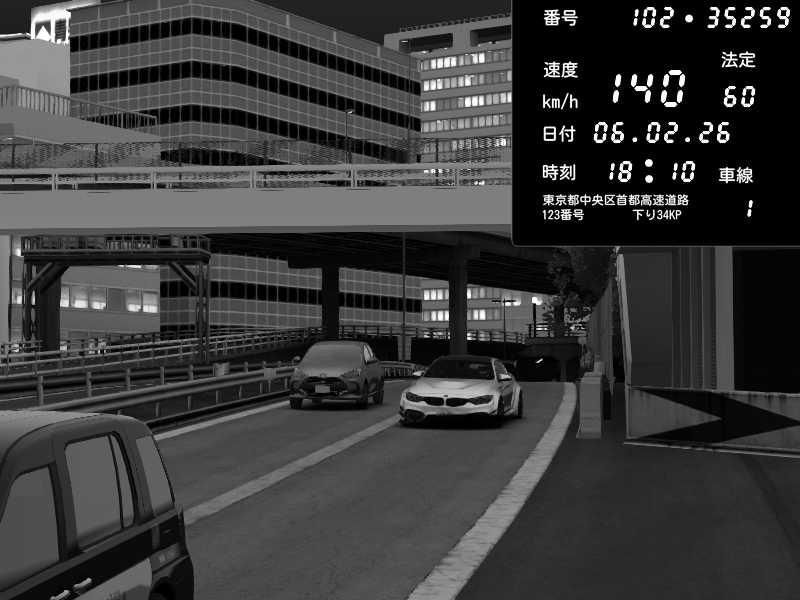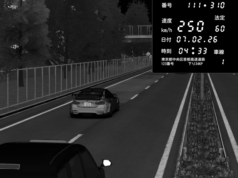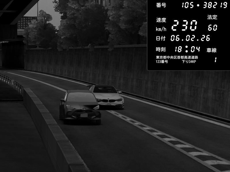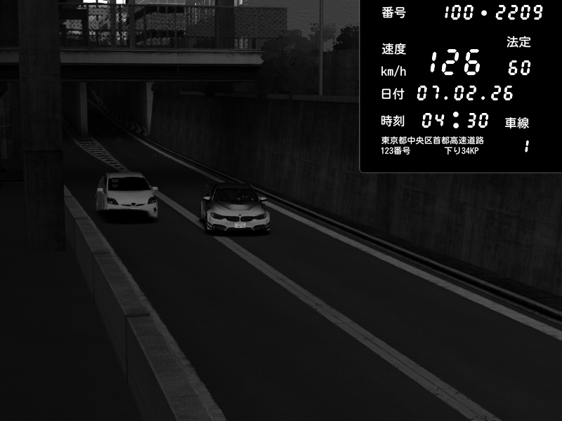 | 2026/02/07 04:23 | 4号下り 代々木 | 109 / 60 km/h | GLACK | BMW M4 crash.Sp Varis Widebody | CAPTURE |
