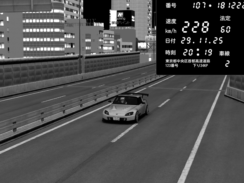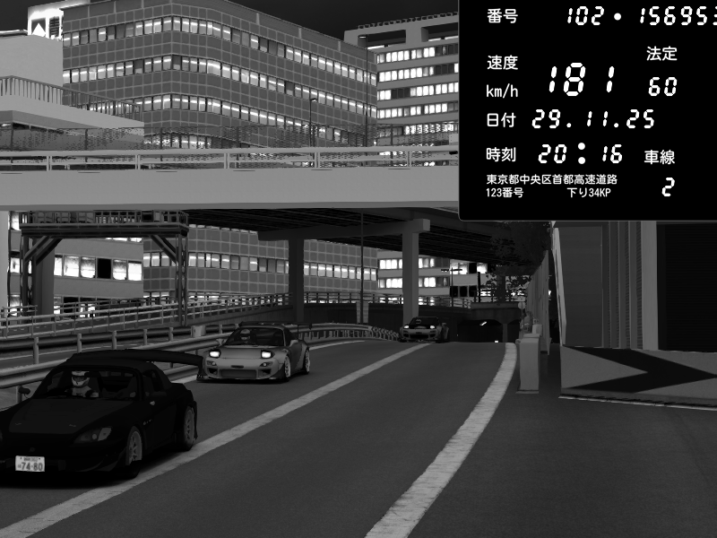 | 2025/11/29 20:20 | C1外回り 新富町 | 189 / 60 km/h | ゴストレイ | Honda S2000 (AP2 - Legendary) | CAPTURE |