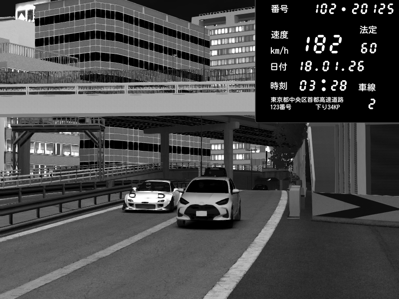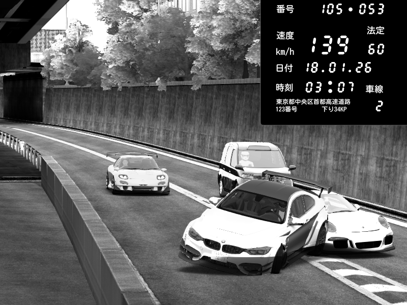 | 2026/01/18 03:23 | C1内回り 竹橋JCT | 123 / 60 km/h | Nikolai Reptile SUKOclub | BMW M4 crash.Sp Varis Widebody | CAPTURE |