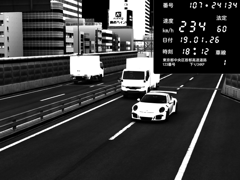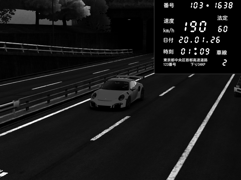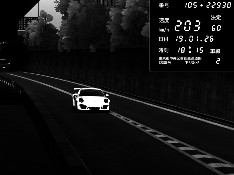 | 2026/01/19 05:42 | C1内回り 京橋 | 109 / 60 km/h | DonChacho | Porsche 911 GT3 RS | CAPTURE |