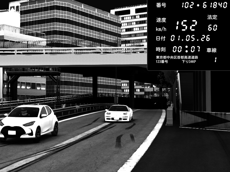 | 2026/04/29 21:26 | C1外回り 新富町 | 183 / 60 km/h | Raven | Pit Road M - Mitsubishi GTO Twin Turbo | CAPTURE |