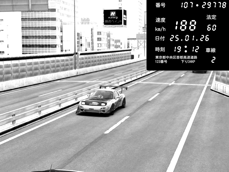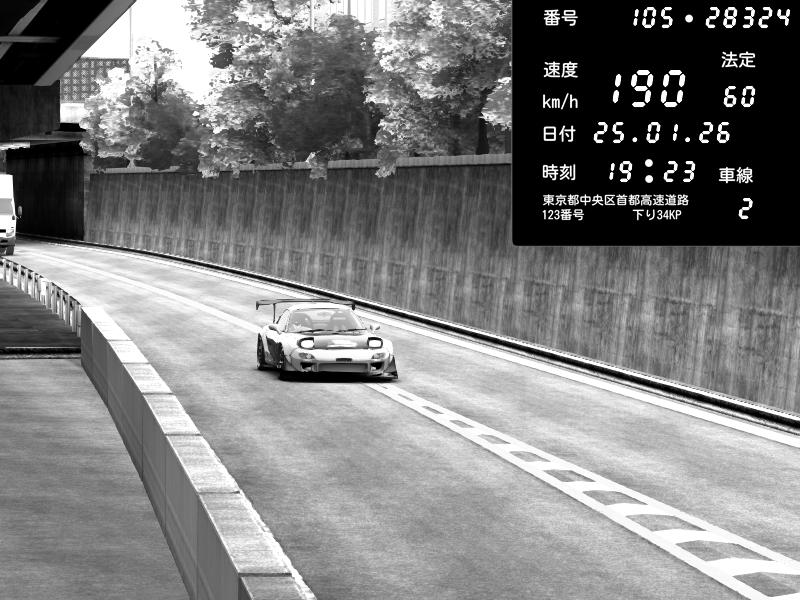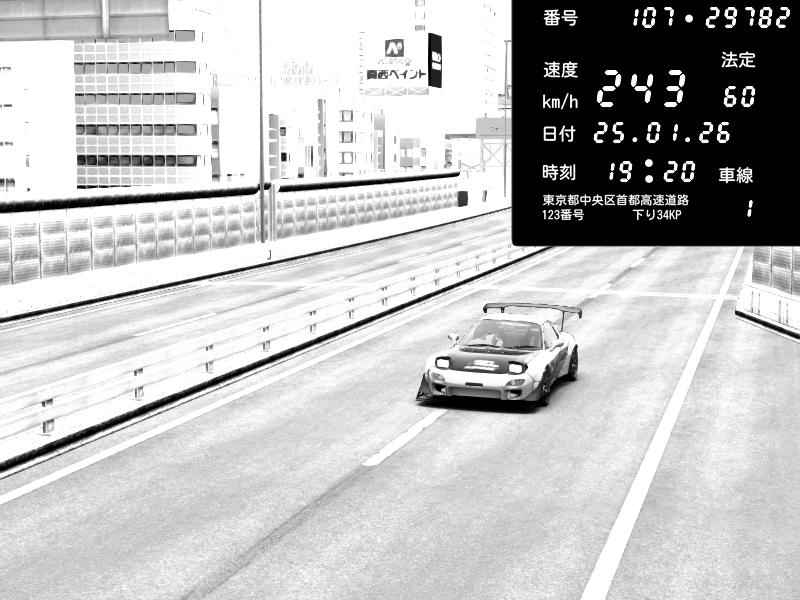 | 2026/01/25 19:23 | C1外回り 京橋 | 190 / 60 km/h | SXUNDWAVE | Mazda RX-7 FD3S FEED Afflux GT3 | CAPTURE |