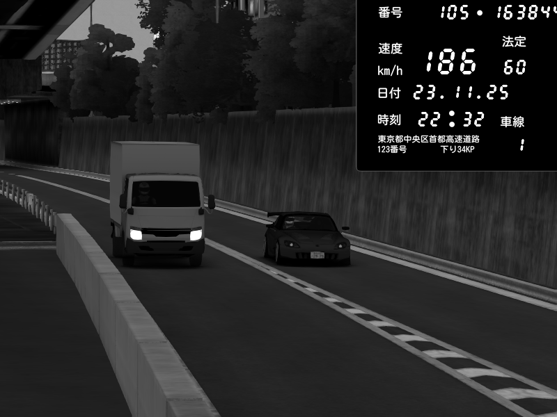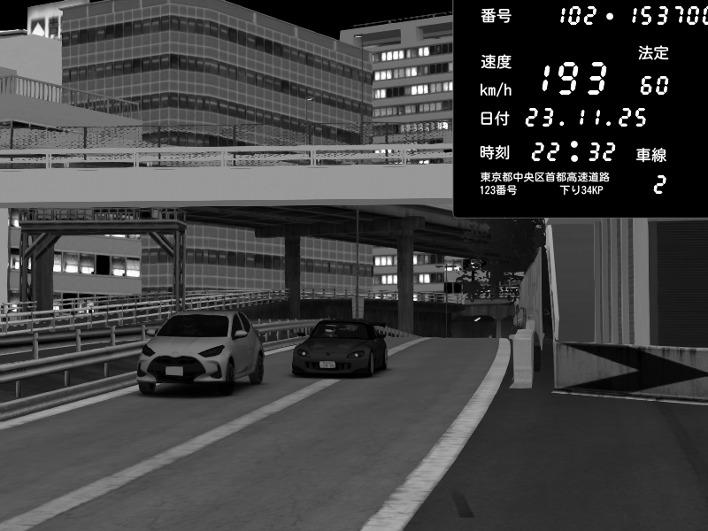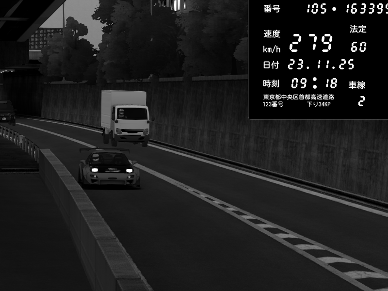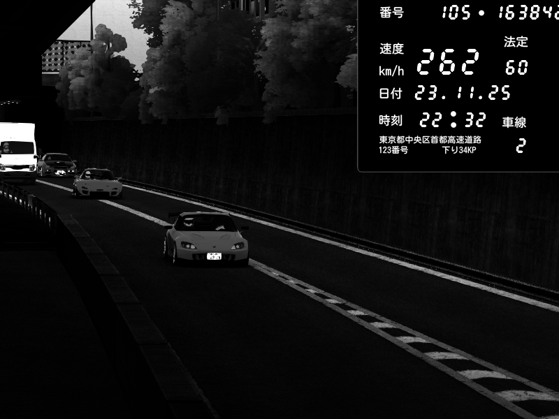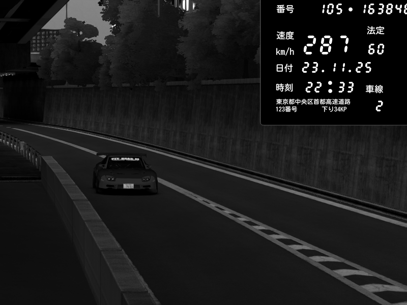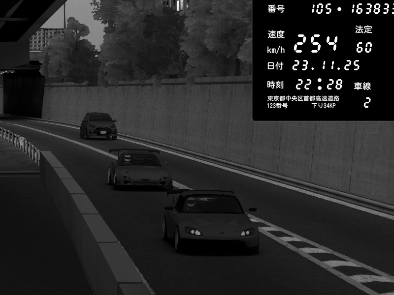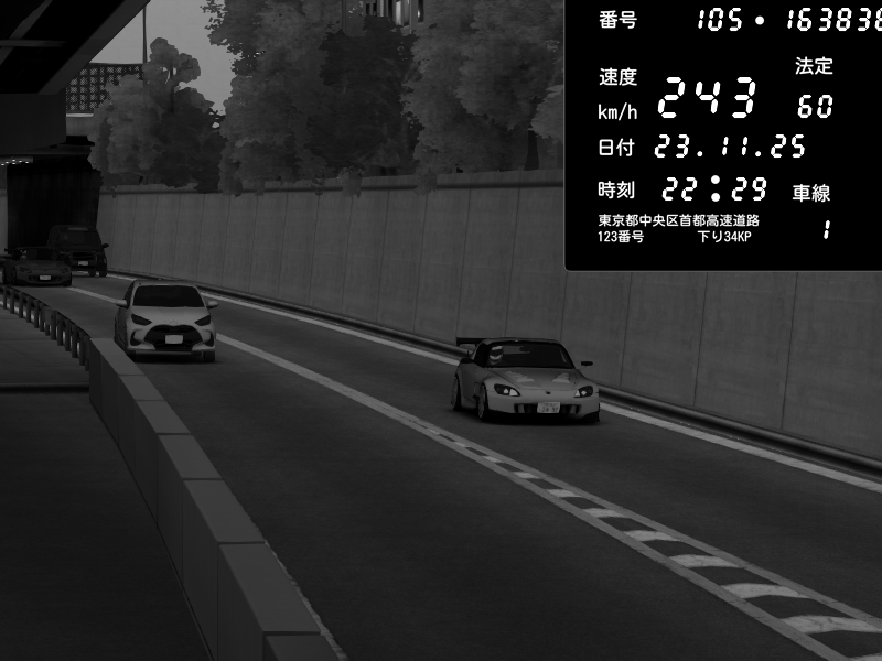 | 2025/11/23 09:09 | C1内回り 銀座 | 234 / 60 km/h | Jeus | Honda S2000 (AP2 - Legendary) | CAPTURE |