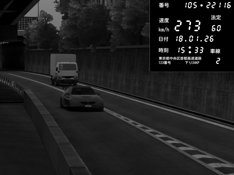 | 2026/01/18 15:33 | C1外回り 京橋 | 273 / 60 km/h | KikokuRori | BMW M4 crash.Sp Varis Widebody | CAPTURE |