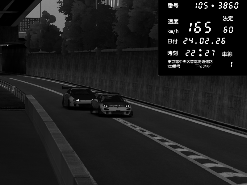 | 2026/02/24 22:30 | C1外回り 新富町 | 203 / 60 km/h | POCHI | Mazda RX-7 FD3S RE Amemiya | CAPTURE |