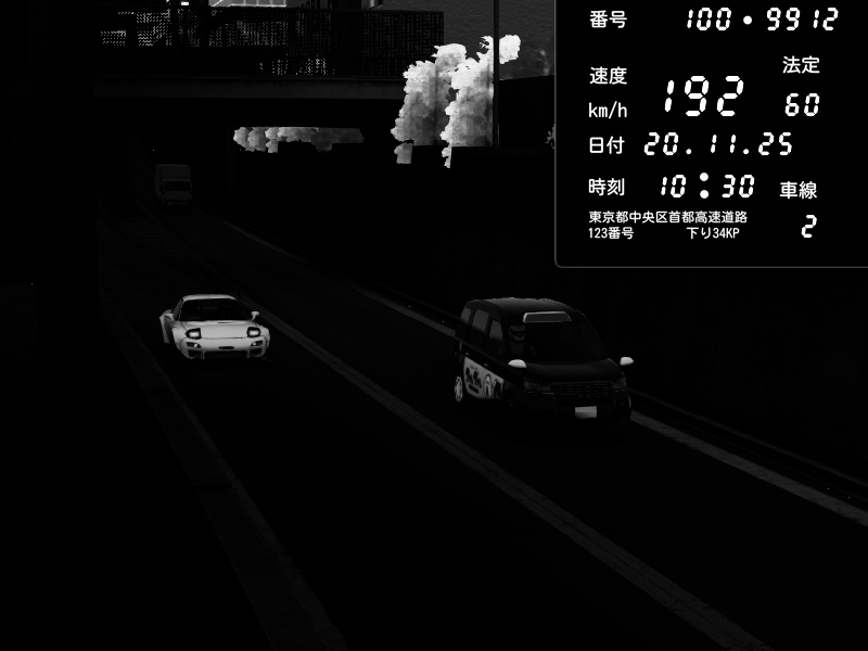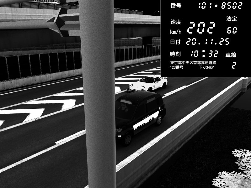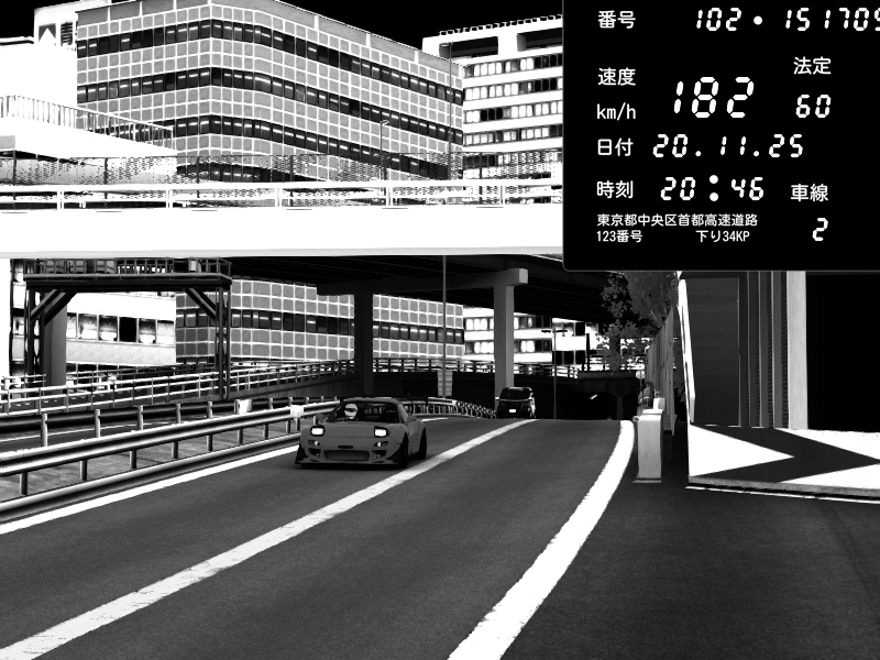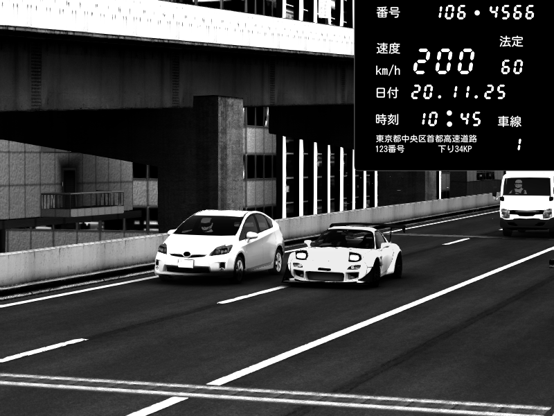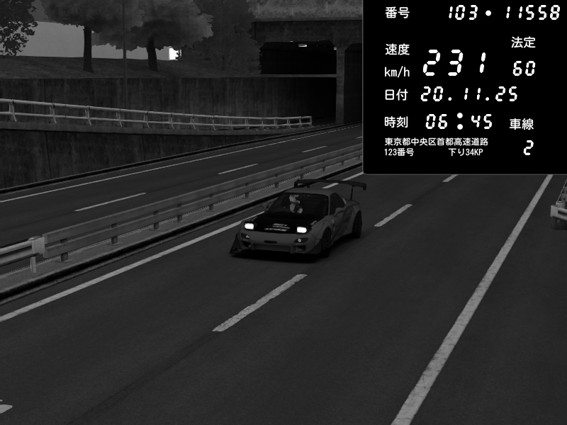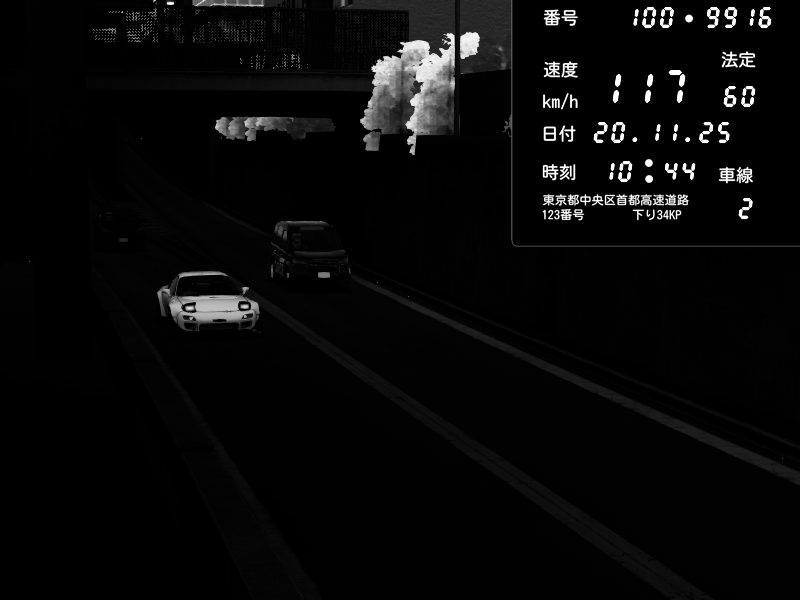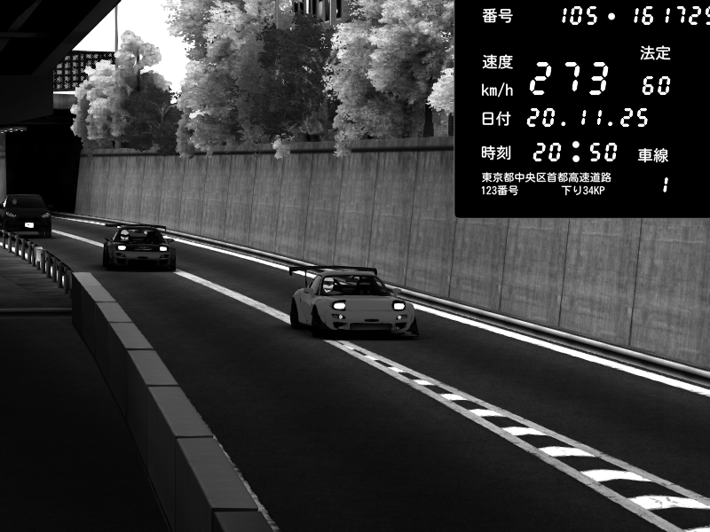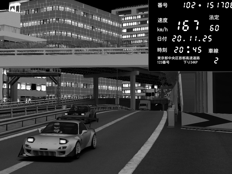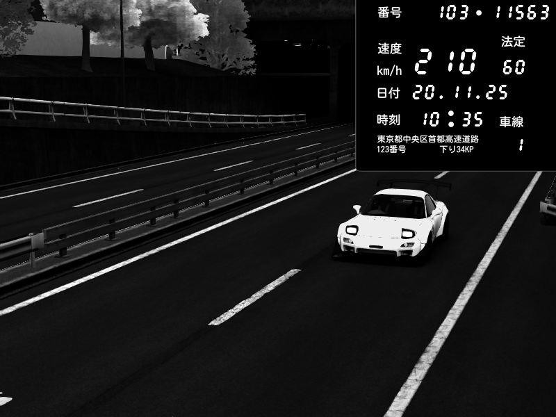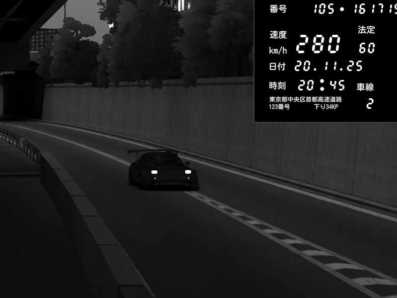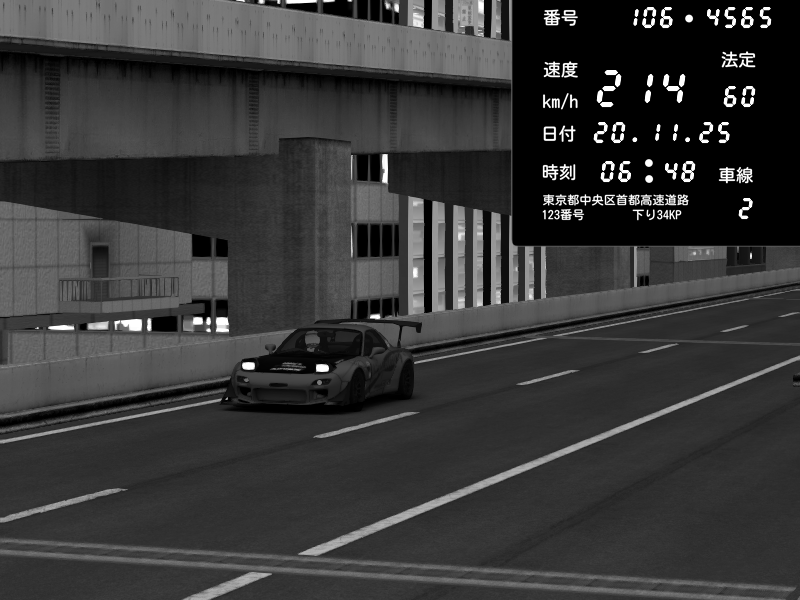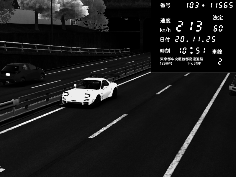 | 2025/11/20 10:32 | C1内回り 竹橋JCT | 202 / 60 km/h | ユリカ@内専 | Mazda RX-7 FD3S FEED Afflux GT3 | CAPTURE |