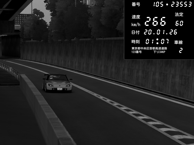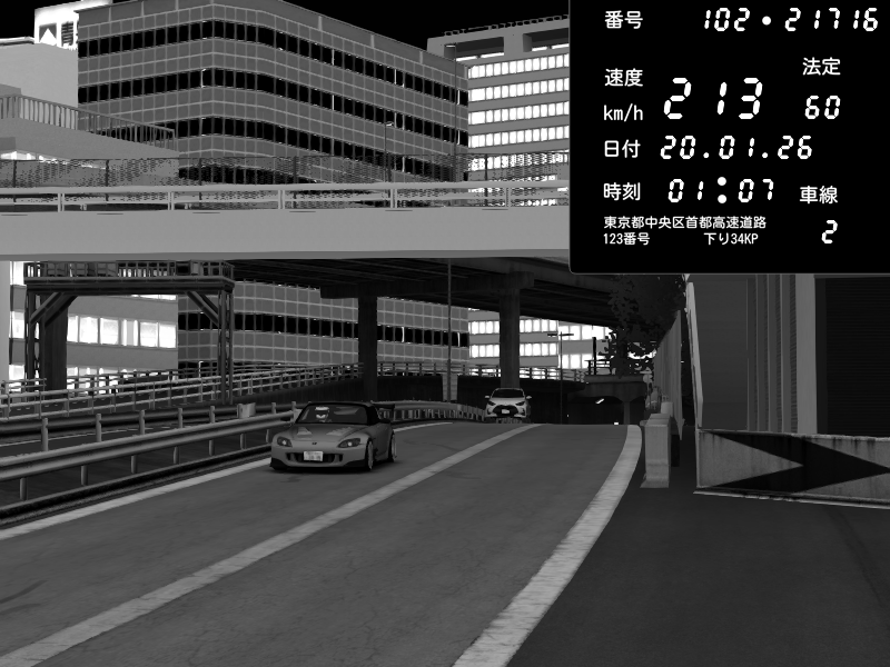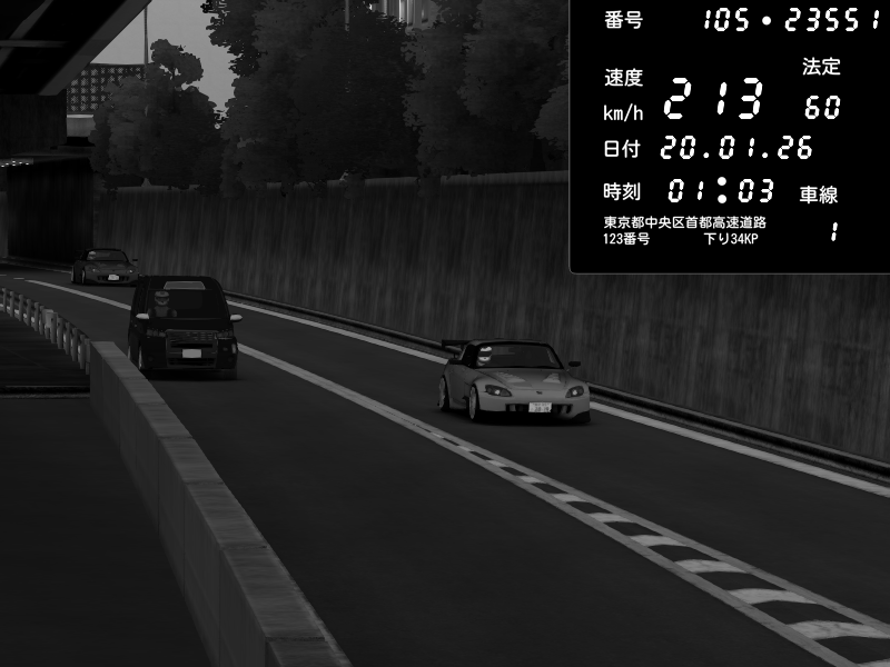 | 2026/01/19 04:46 | C1外回り 新富町 | 200 / 60 km/h | ojisandtift | Honda S2000 (AP2 - Legendary) | CAPTURE |