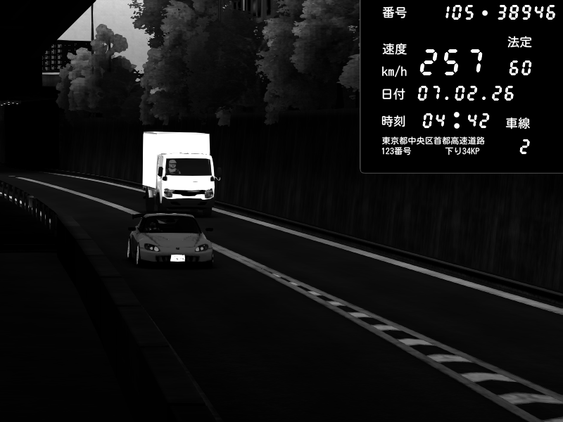 | 2026/02/07 04:42 | C1外回り 京橋 | 257 / 60 km/h | 木曜が一番疲れている | Honda S2000 (AP2 - Legendary) | CAPTURE |