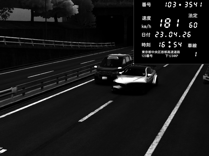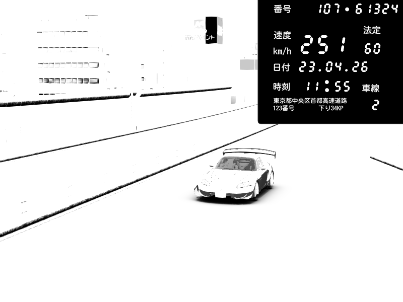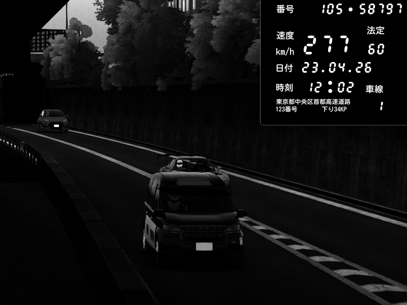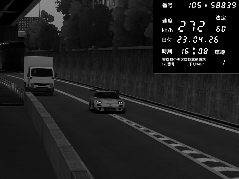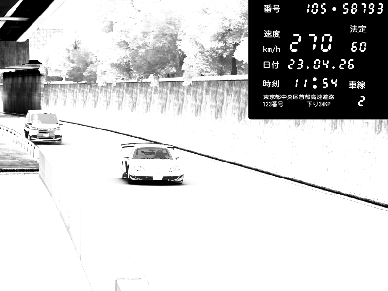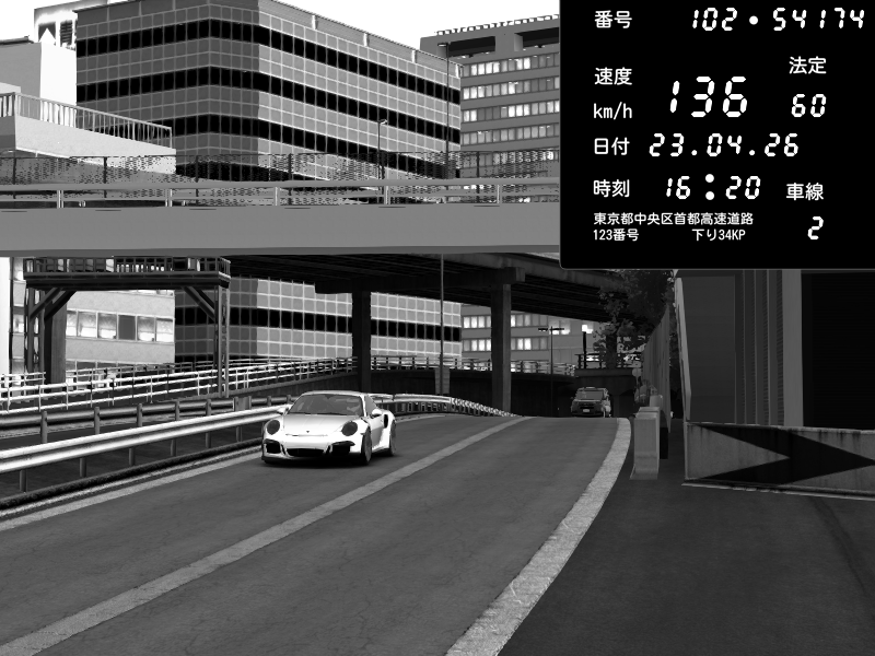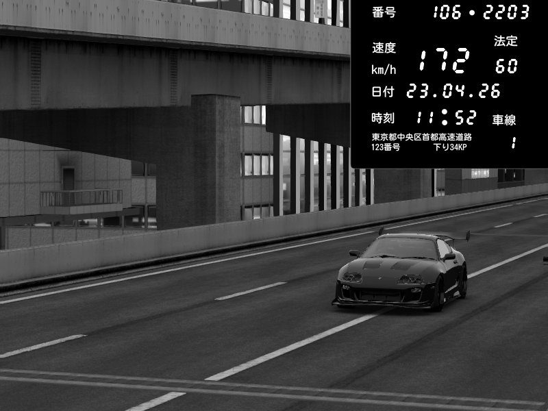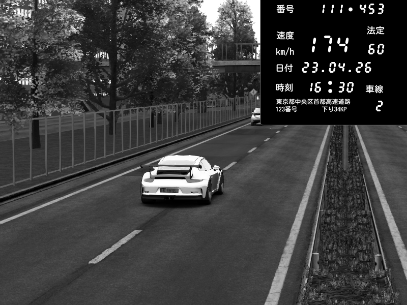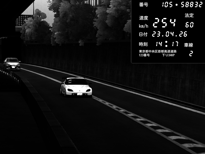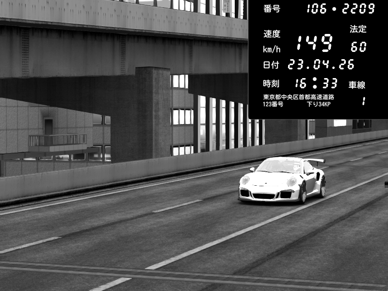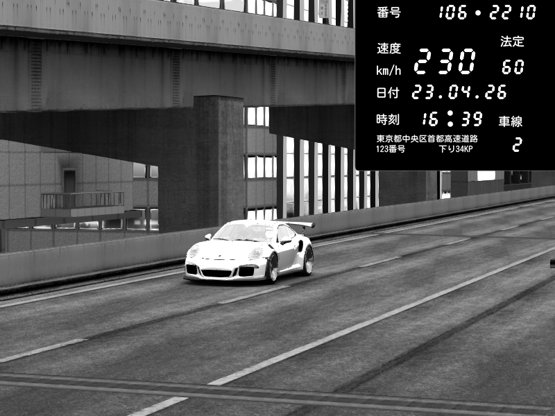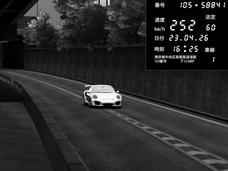 | 2026/04/23 16:25 | C1外回り 京橋 | 252 / 60 km/h | GODFREY | Porsche 911 GT3 RS | CAPTURE |