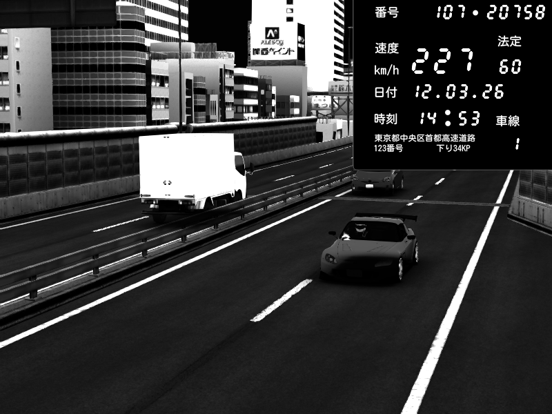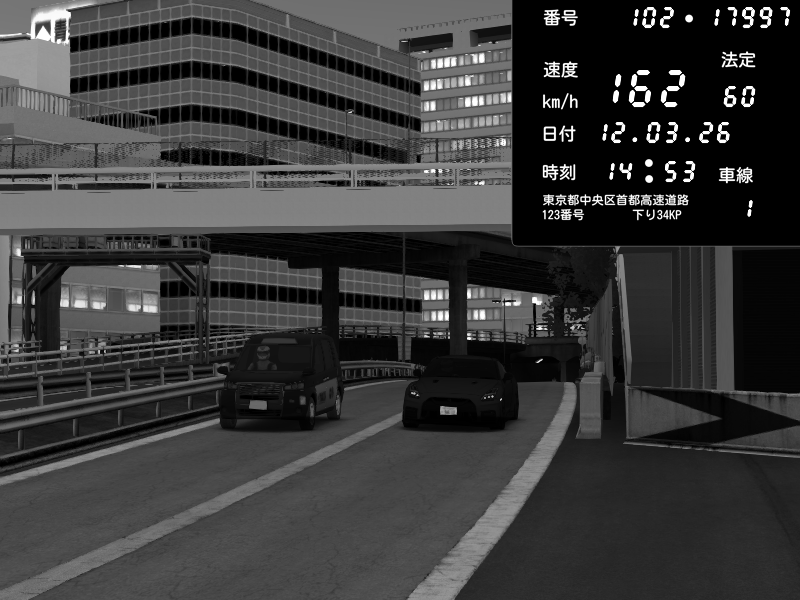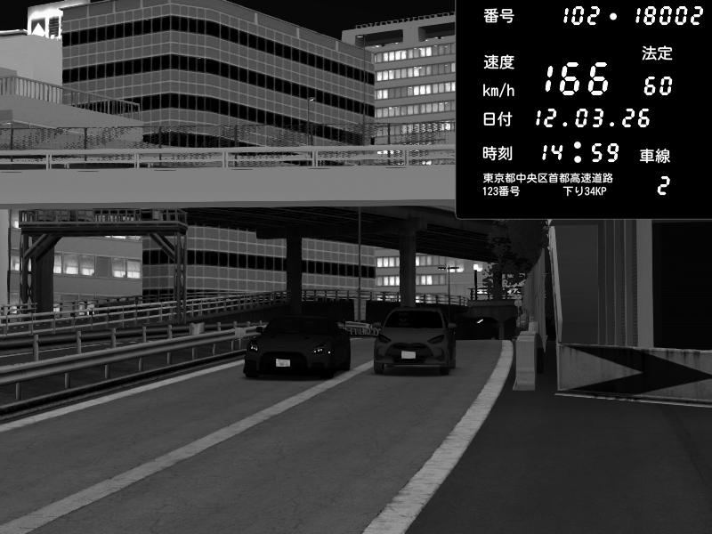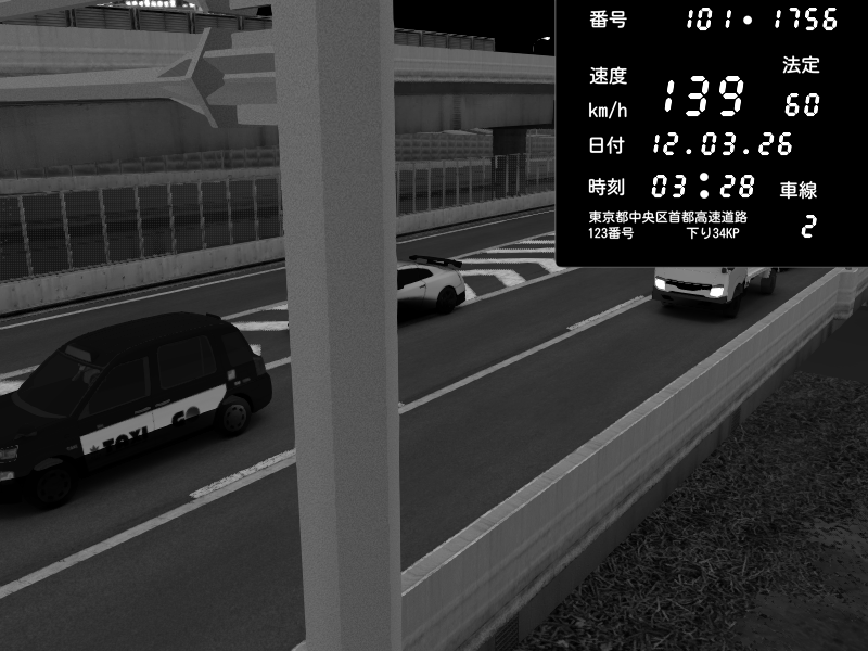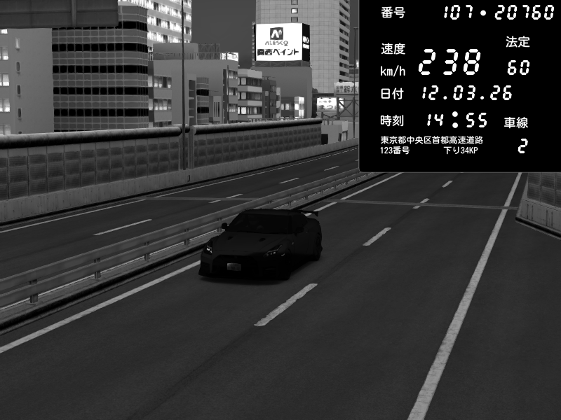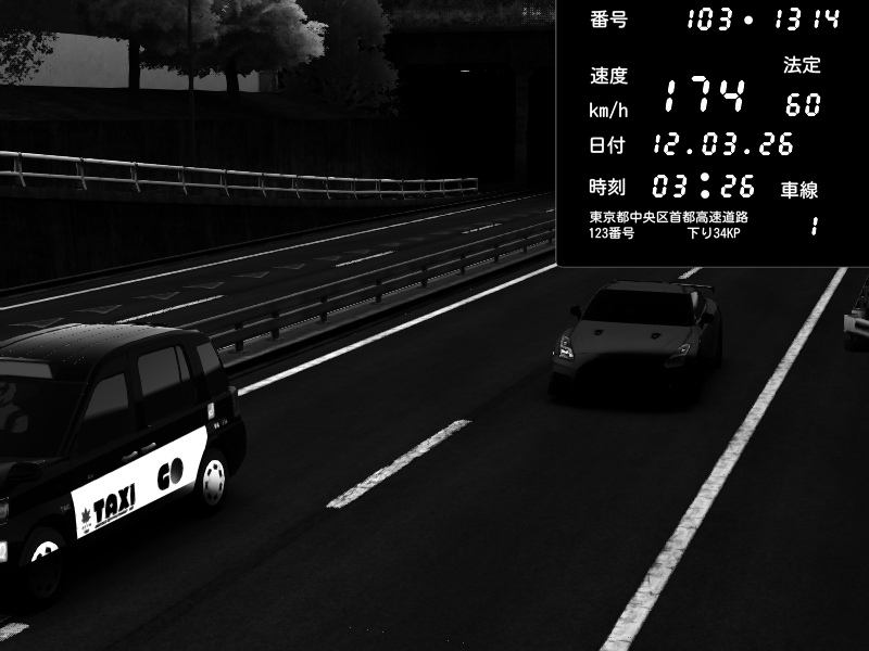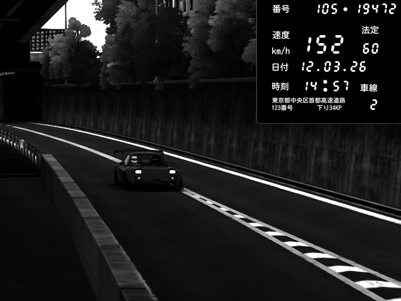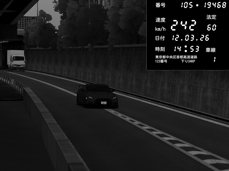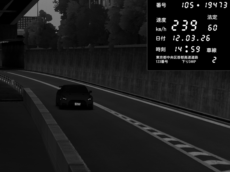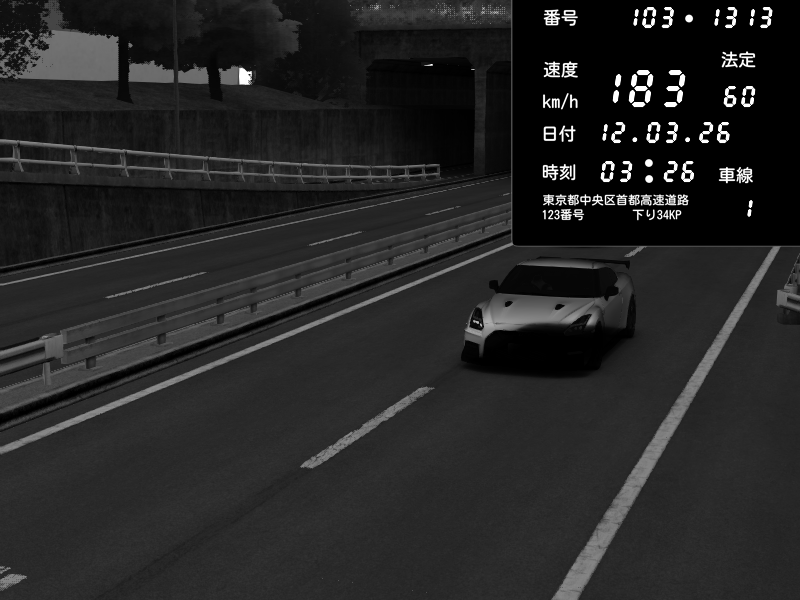 | 2026/03/12 03:26 | C1内回り 京橋 | 111 / 60 km/h | Player | Nissan GT-R NISMO 2017 | CAPTURE |