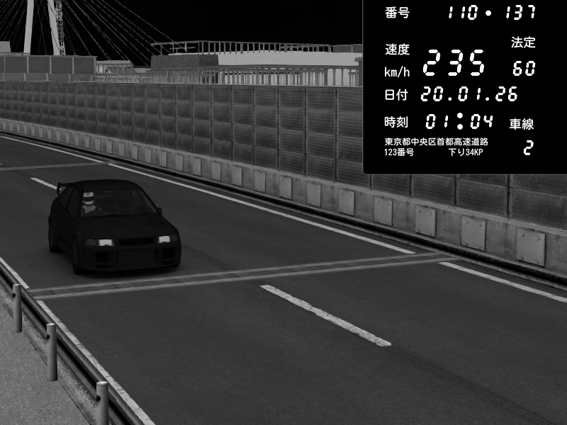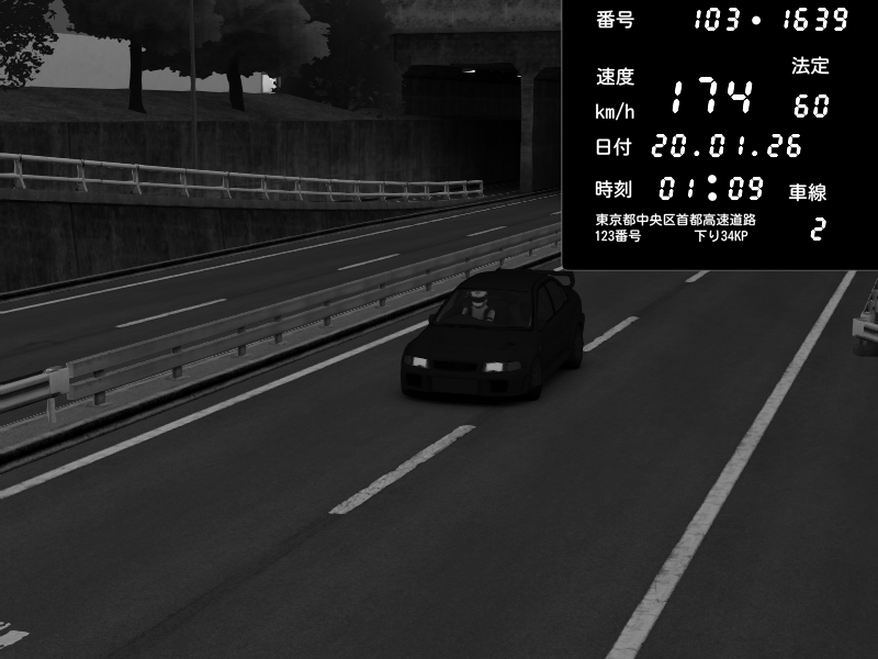 | 2026/01/19 05:05 | C1内回り 竹橋JCT | 114 / 60 km/h | Skzinnz | Mitsubishi Lancer Evolution V Wangan Spec | CAPTURE |
