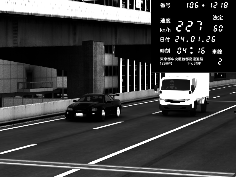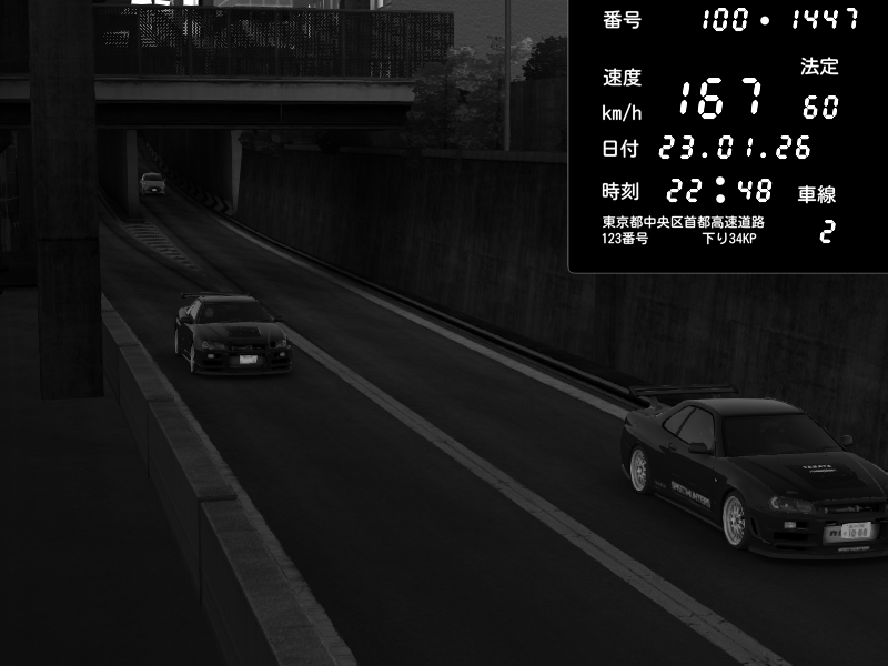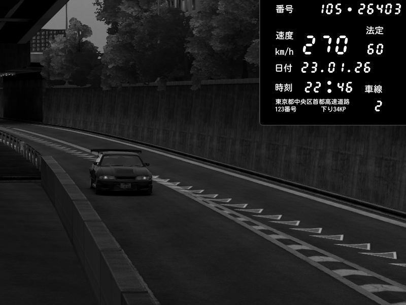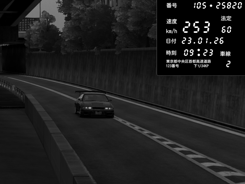 | 2026/01/23 22:46 | C1外回り 新富町 | 170 / 60 km/h | pussy push | Nissan Skyline GTR R33 (S3 - Wangan) | CAPTURE |