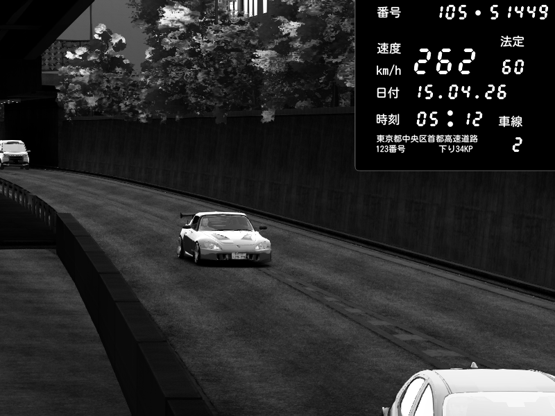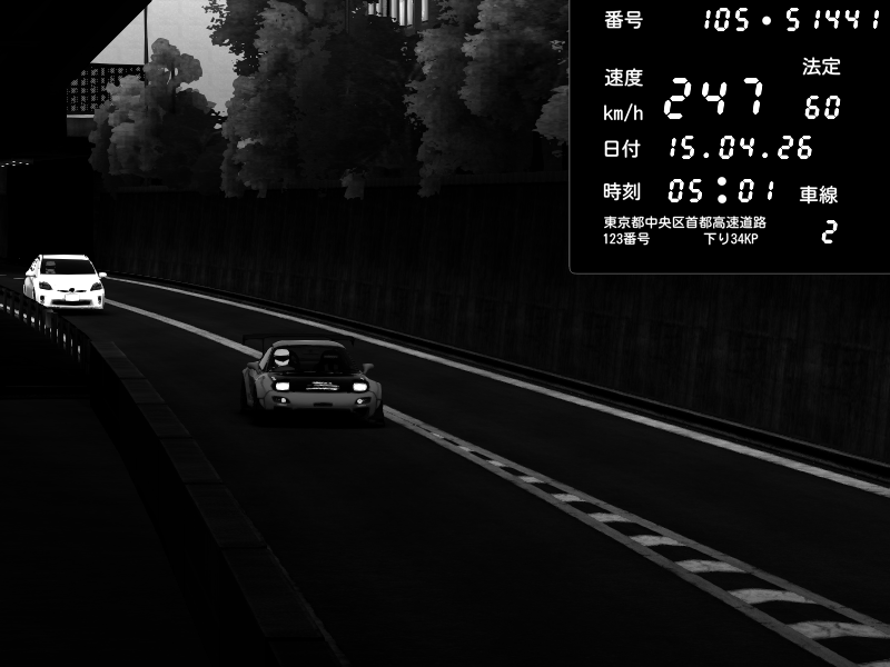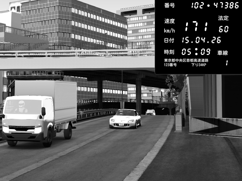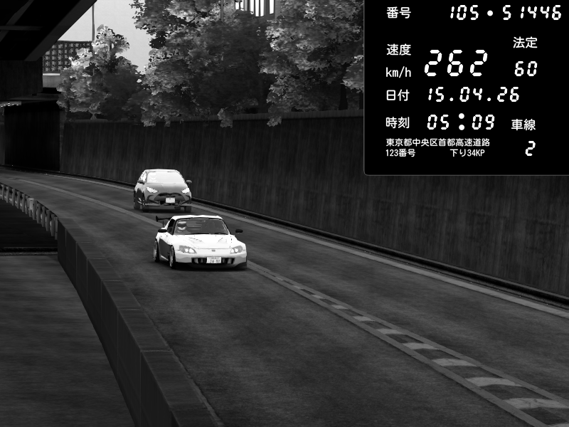 | 2026/04/15 05:09 | C1外回り 新富町 | 171 / 60 km/h | PS3 | Honda S2000 (AP2 - Legendary) | CAPTURE |