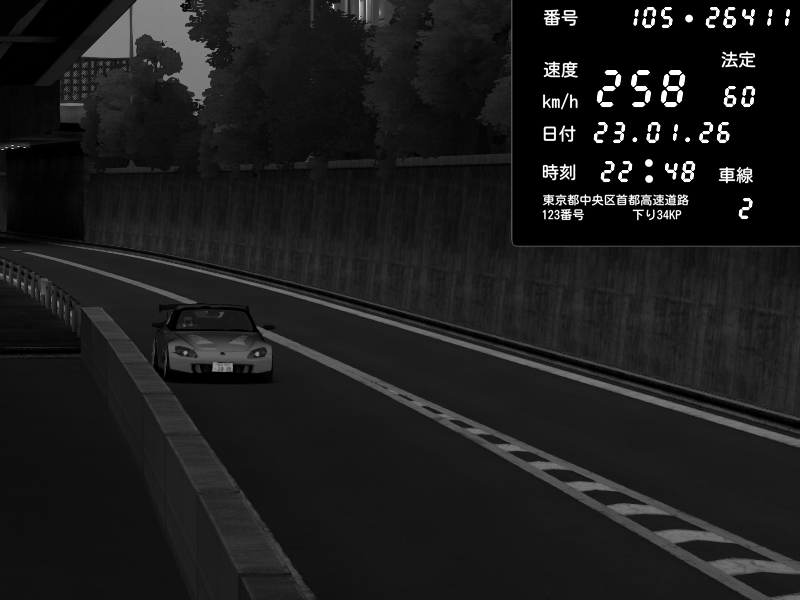 | 2026/01/23 22:48 | C1外回り 京橋 | 258 / 60 km/h | PaNko | Honda S2000 (AP2 - Legendary) | CAPTURE |