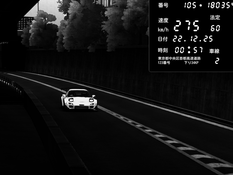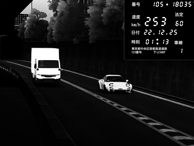 | 2025/12/22 00:14 | C1外回り 京橋 | 269 / 60 km/h | suno | Mazda RX-7 FD3S RE Amemiya | CAPTURE |