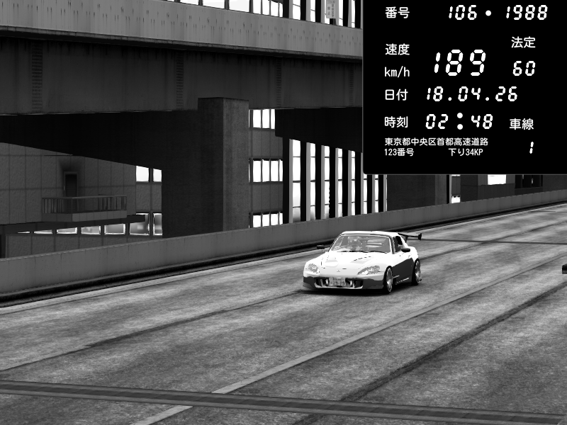 | 2026/04/18 02:41 | C1内回り 竹橋JCT | 202 / 60 km/h | 木曜が一番疲れている | Honda S2000 (AP2 - Legendary) | CAPTURE |