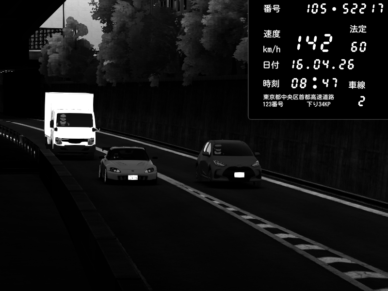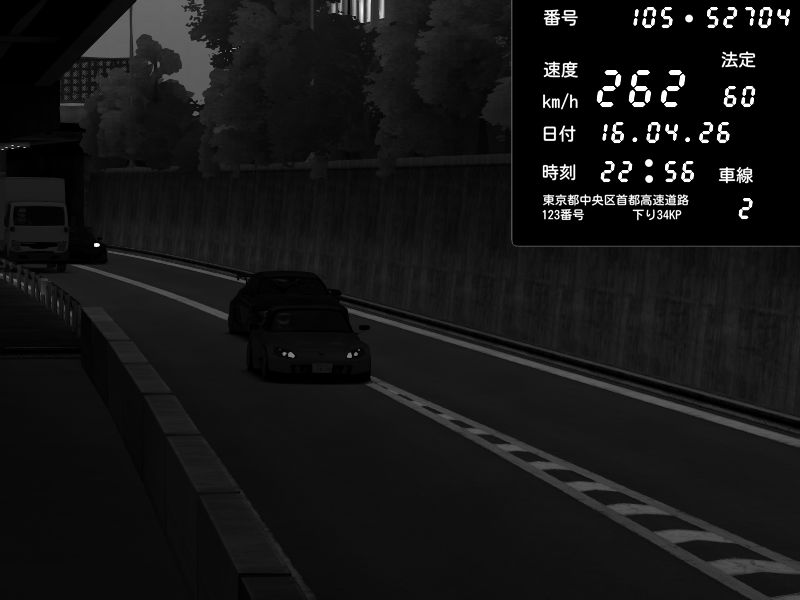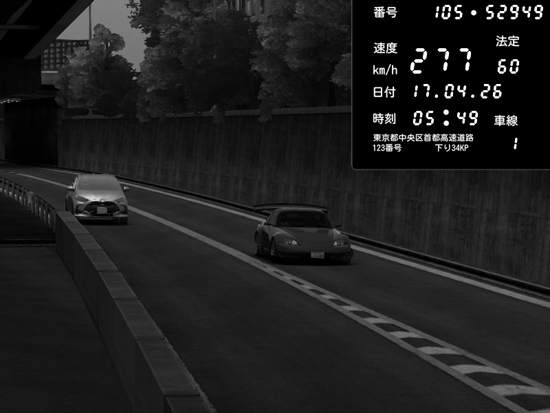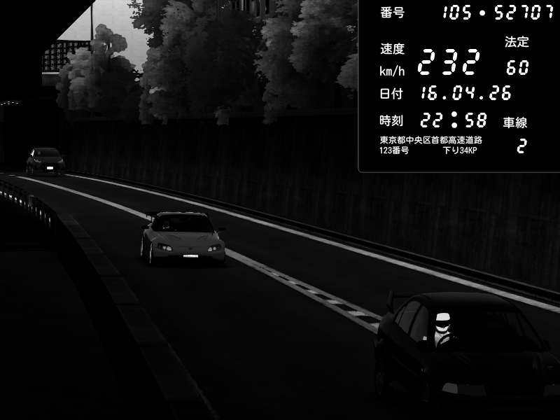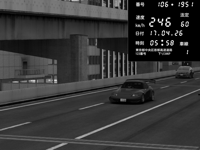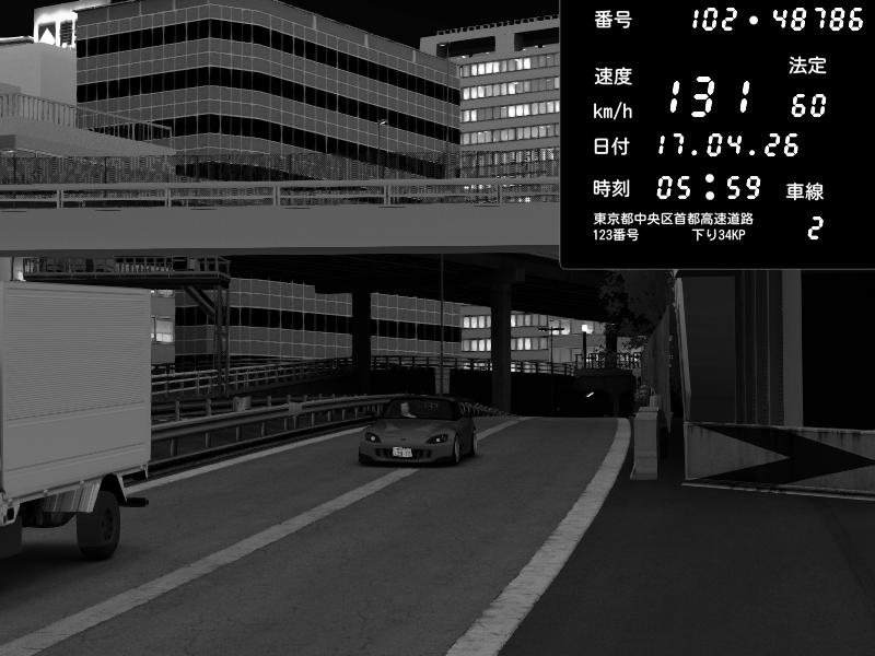 | 2026/04/17 05:38 | C1外回り 京橋 | 226 / 60 km/h | irs | Honda S2000 (AP2 - Legendary) | CAPTURE |
