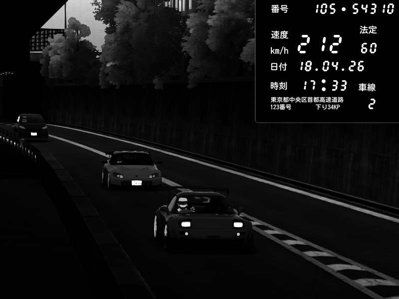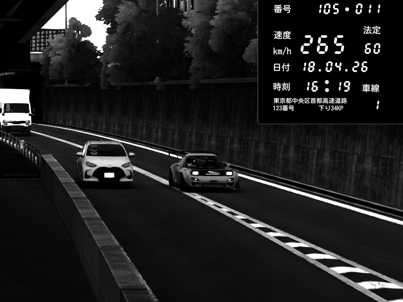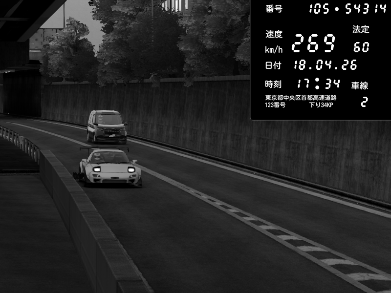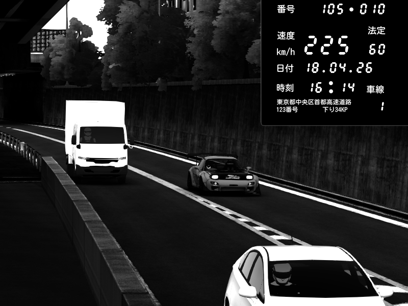 | 2026/04/18 22:45 | C1外回り 京橋 | 185 / 60 km/h | AZULE | Mazda RX-7 FD3S RE Amemiya | CAPTURE |