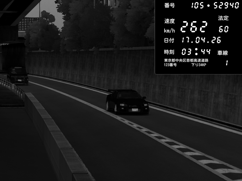 | 2026/04/17 03:44 | C1外回り 京橋 | 262 / 60 km/h | misatoonce91 | Nissan Skyline GT-R R34 Nismo Omori Factory S1 | CAPTURE |