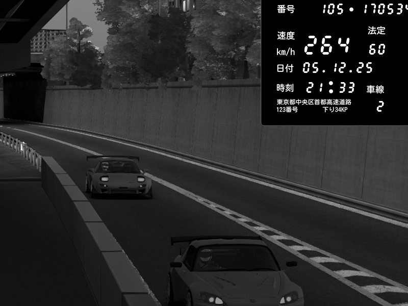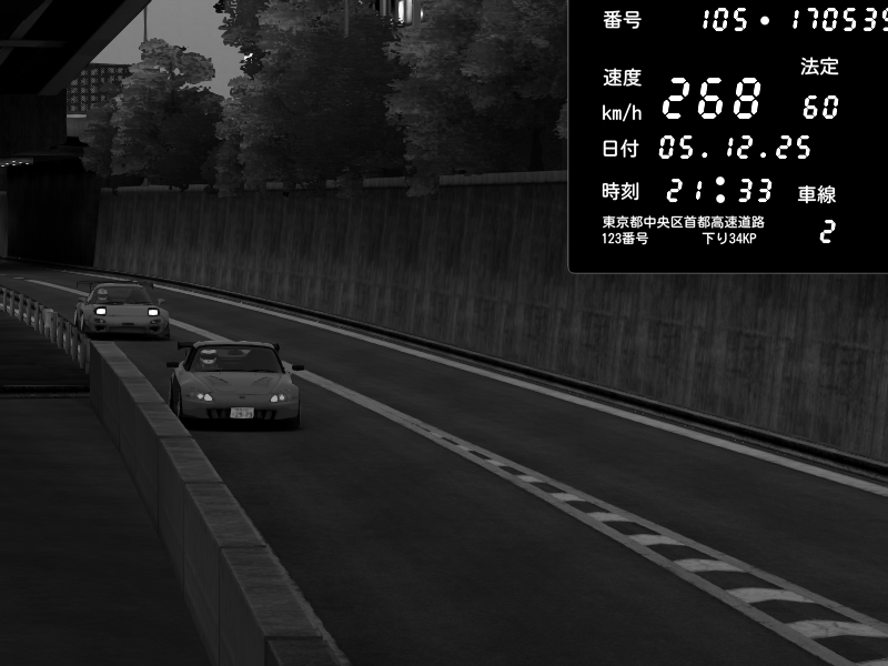 | 2025/12/05 15:20 | C1外回り 京橋 | 266 / 60 km/h | ナイトシフト | Mazda RX-7 FD3S FEED Afflux GT3 | CAPTURE |