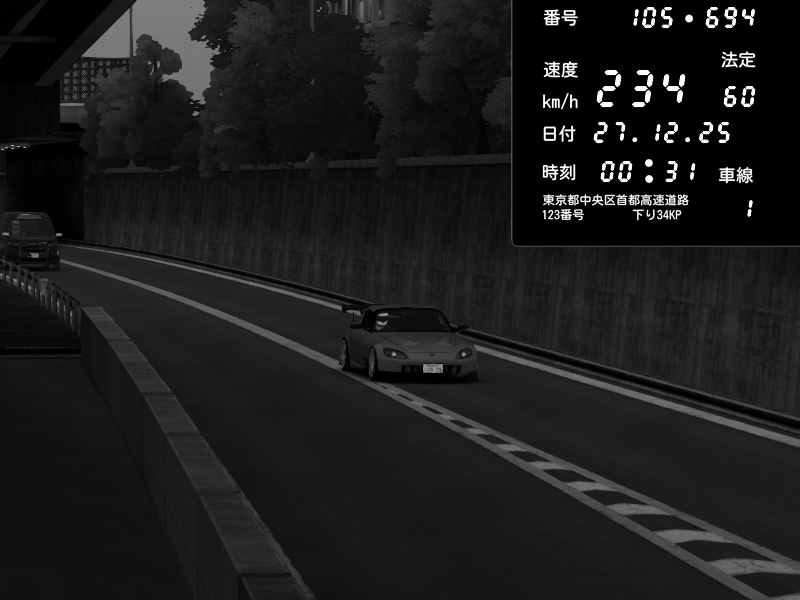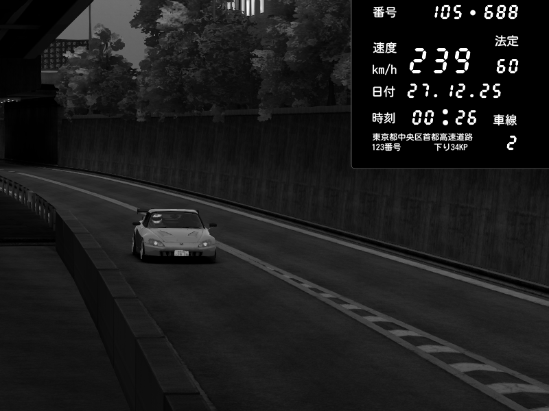 | 2025/12/27 00:31 | C1外回り 京橋 | 234 / 60 km/h | Mikken | Honda S2000 (AP2 - Legendary) | CAPTURE |