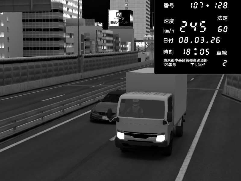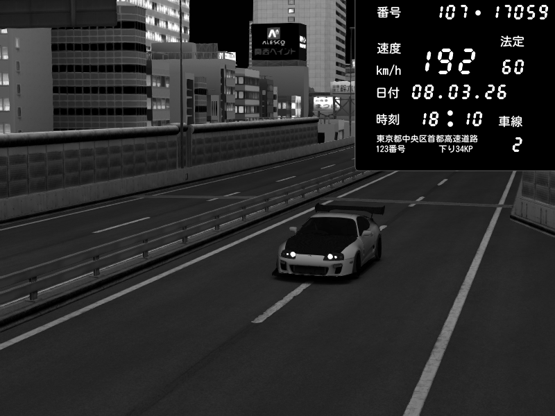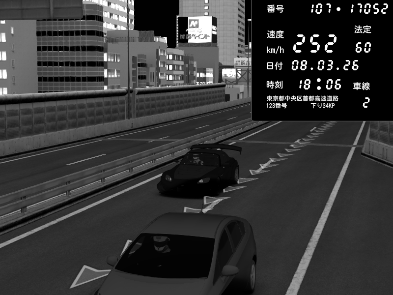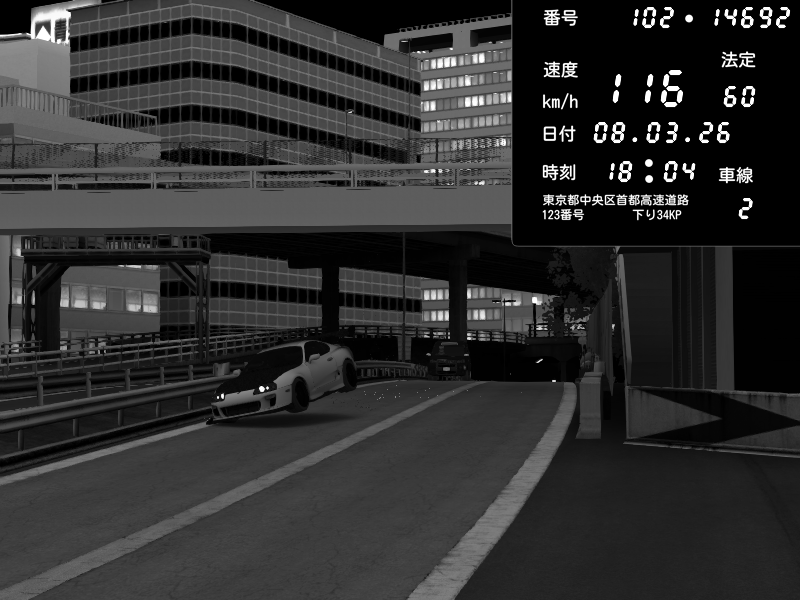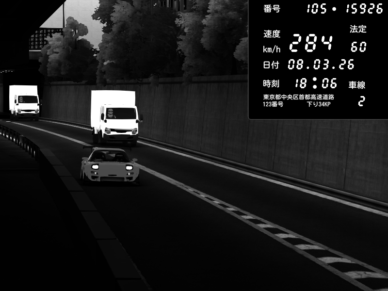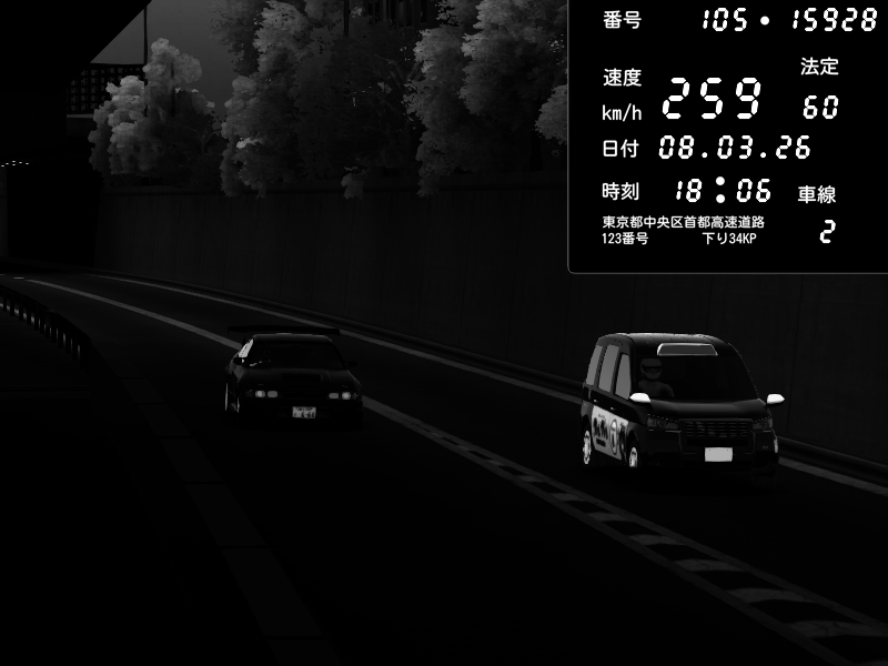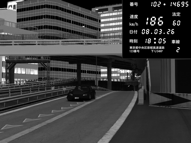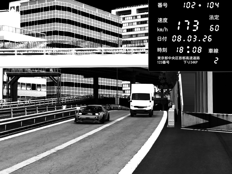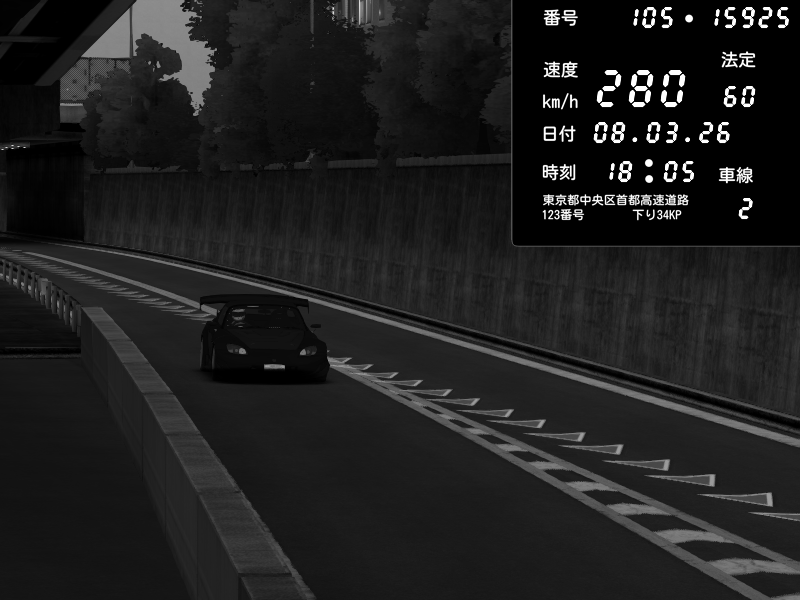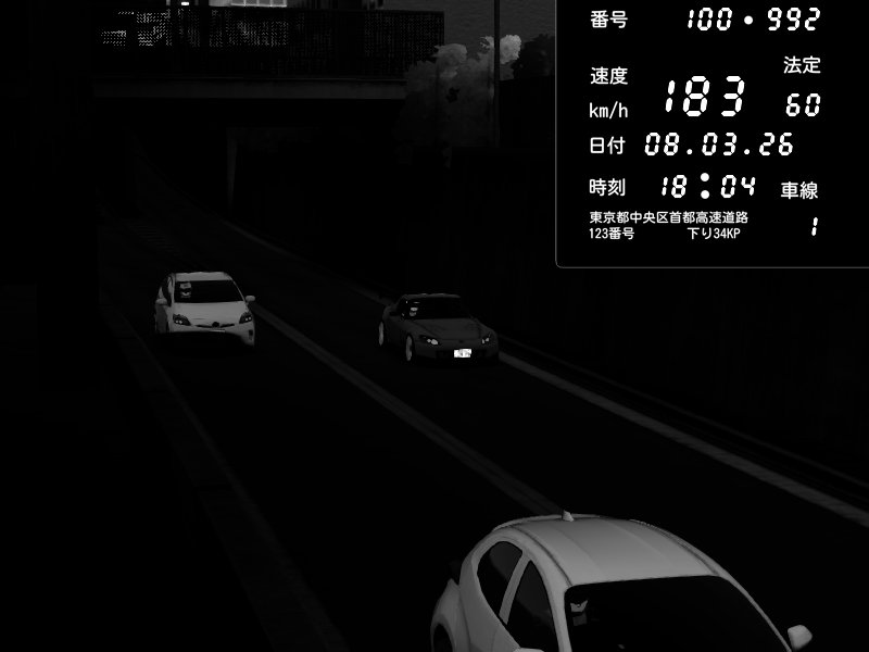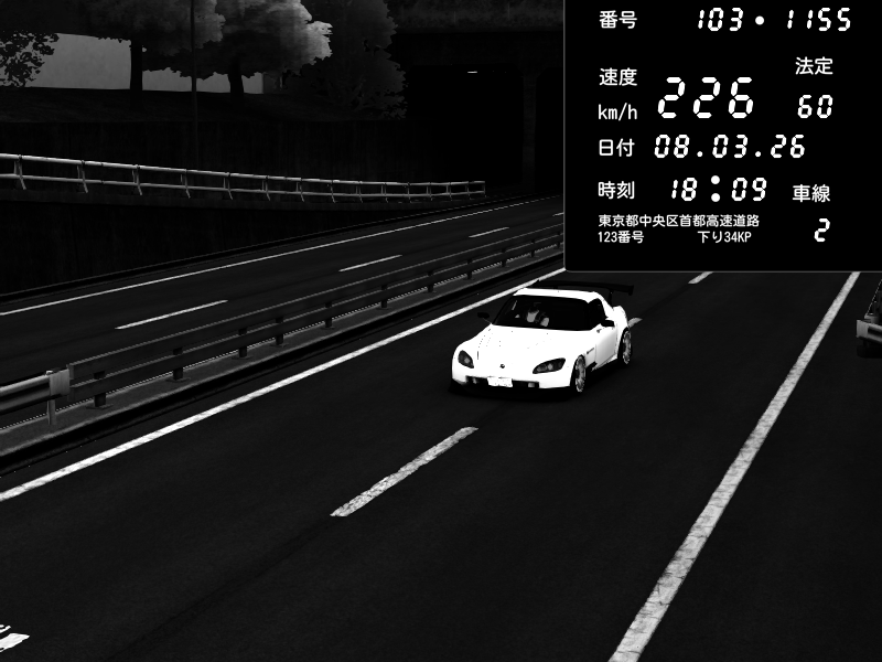 | 2026/03/08 18:09 | C1内回り 銀座 | 226 / 60 km/h | Player | Honda S2000 (AP2 - Legendary) | CAPTURE |