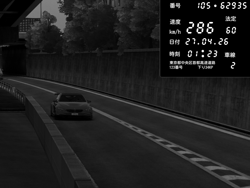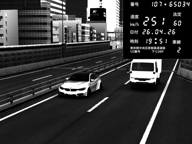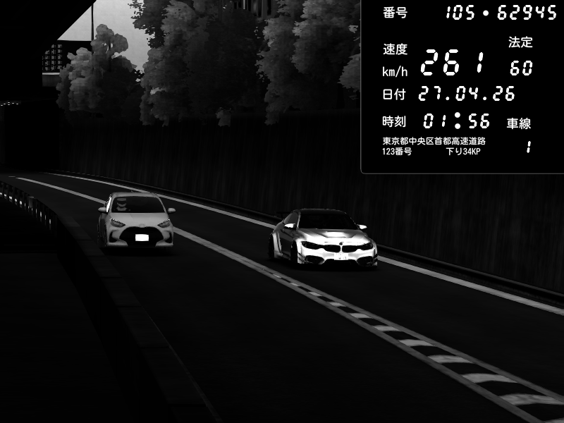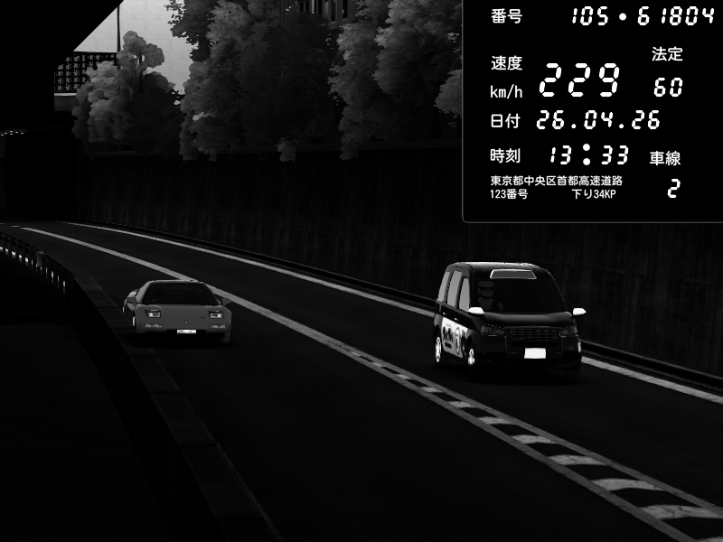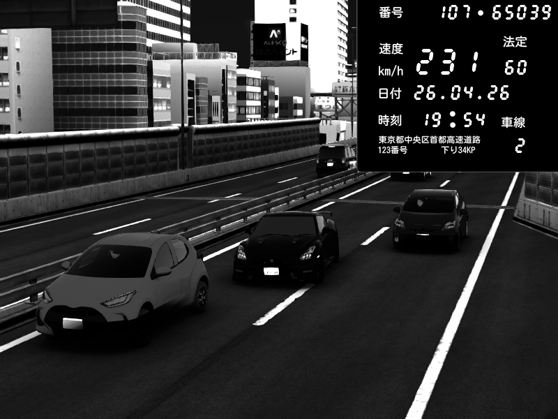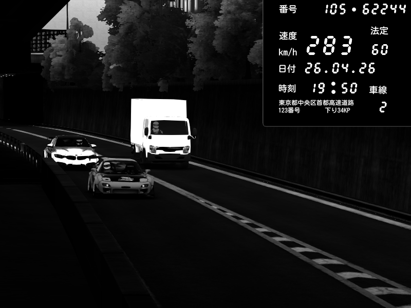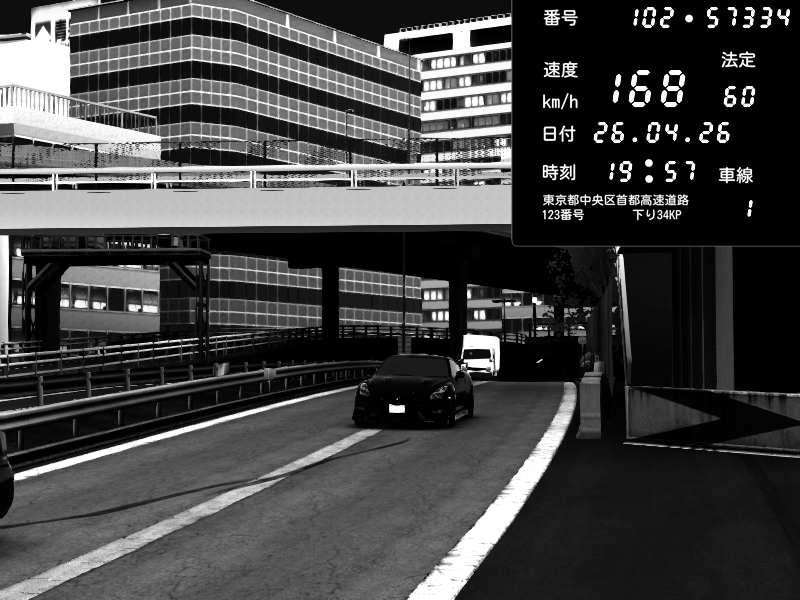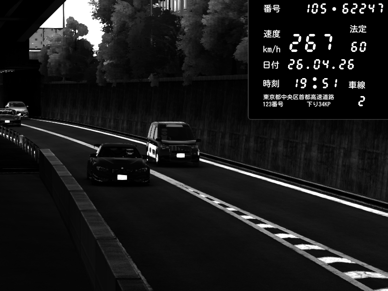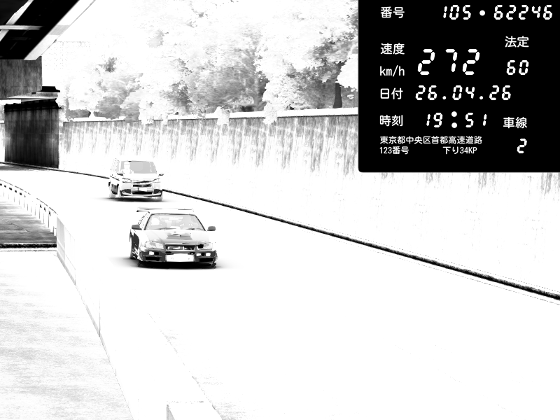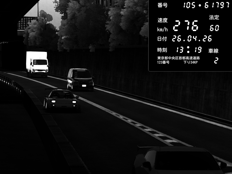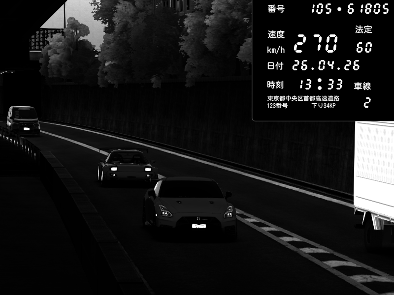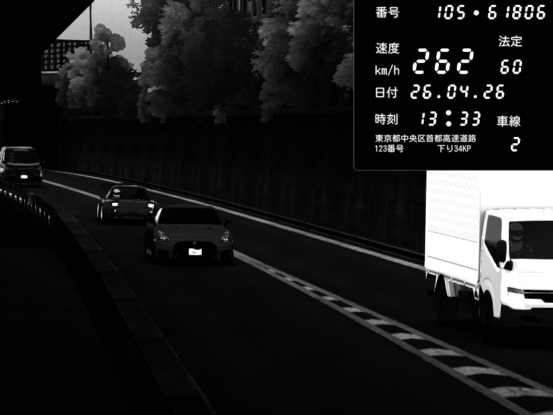 | 2026/04/26 13:19 | C1外回り 新富町 | 193 / 60 km/h | NeuroDeujj | Nissan GT-R NISMO 2017 | CAPTURE |